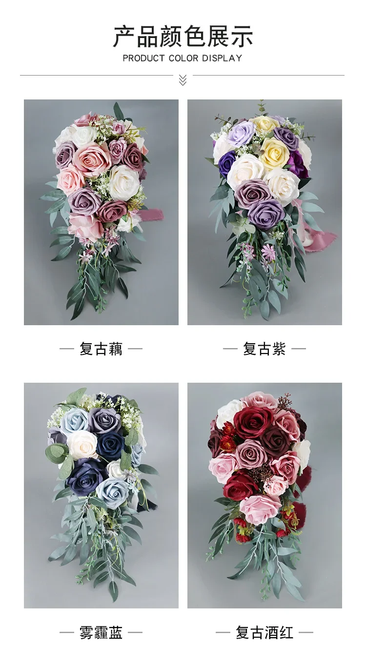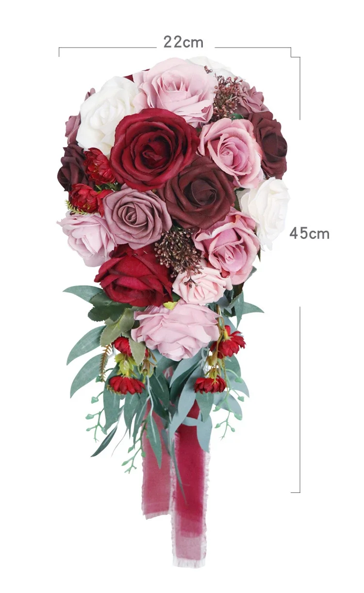 빈티지 샴페인 꽃다발 폭포 결혼식 신부 들러리 손으로 묶인 인공 꽃 축제 파티 홈 크리스마스 장식