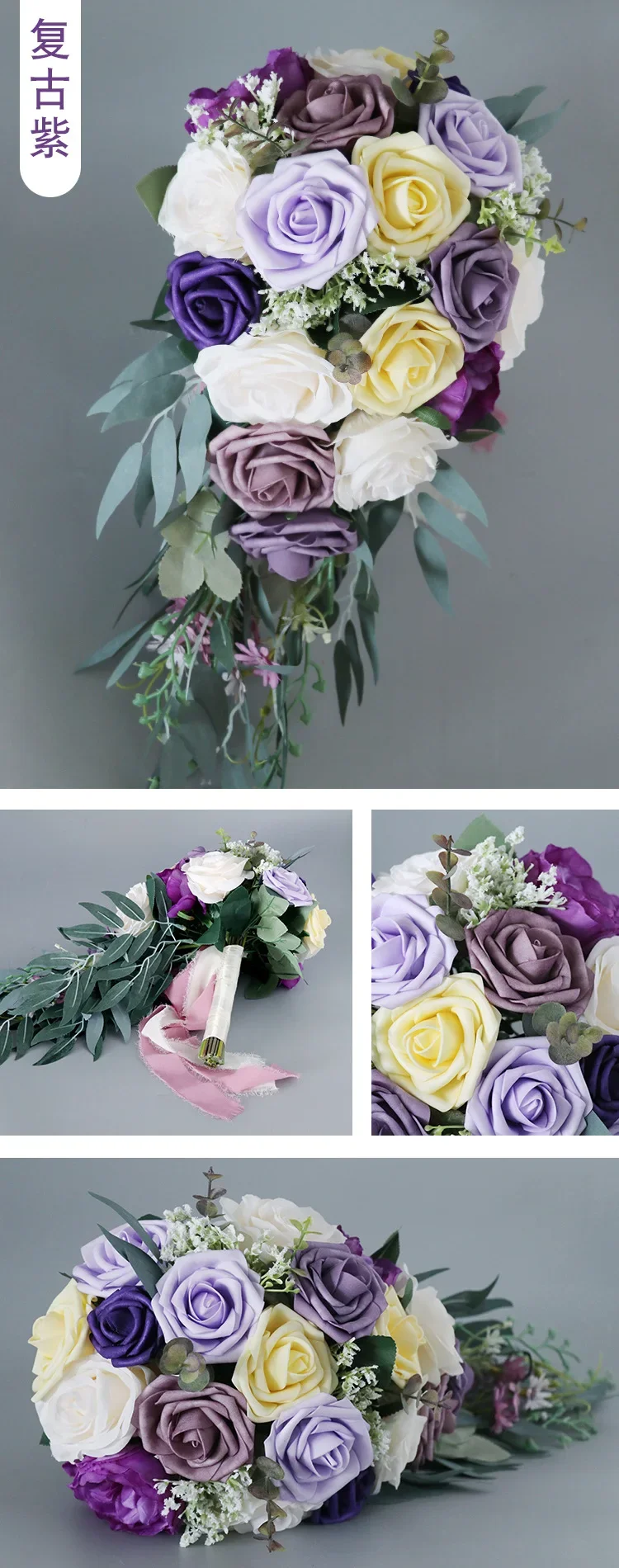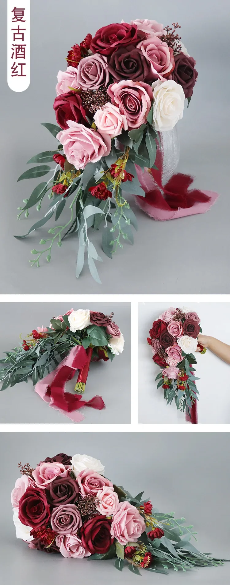 빈티지 샴페인 꽃다발 폭포 웨딩 신부 들러리 손 묶여 인공 꽃 축제 파티 홈 크리스마스 장식
