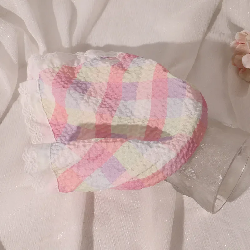 빨간색 짠 격자 무늬 레이스 헤어 스카프 랩 여성 레트로 삼각형 Headscarf 모자 여행 사진 머리띠 소녀 헤어 액세서리