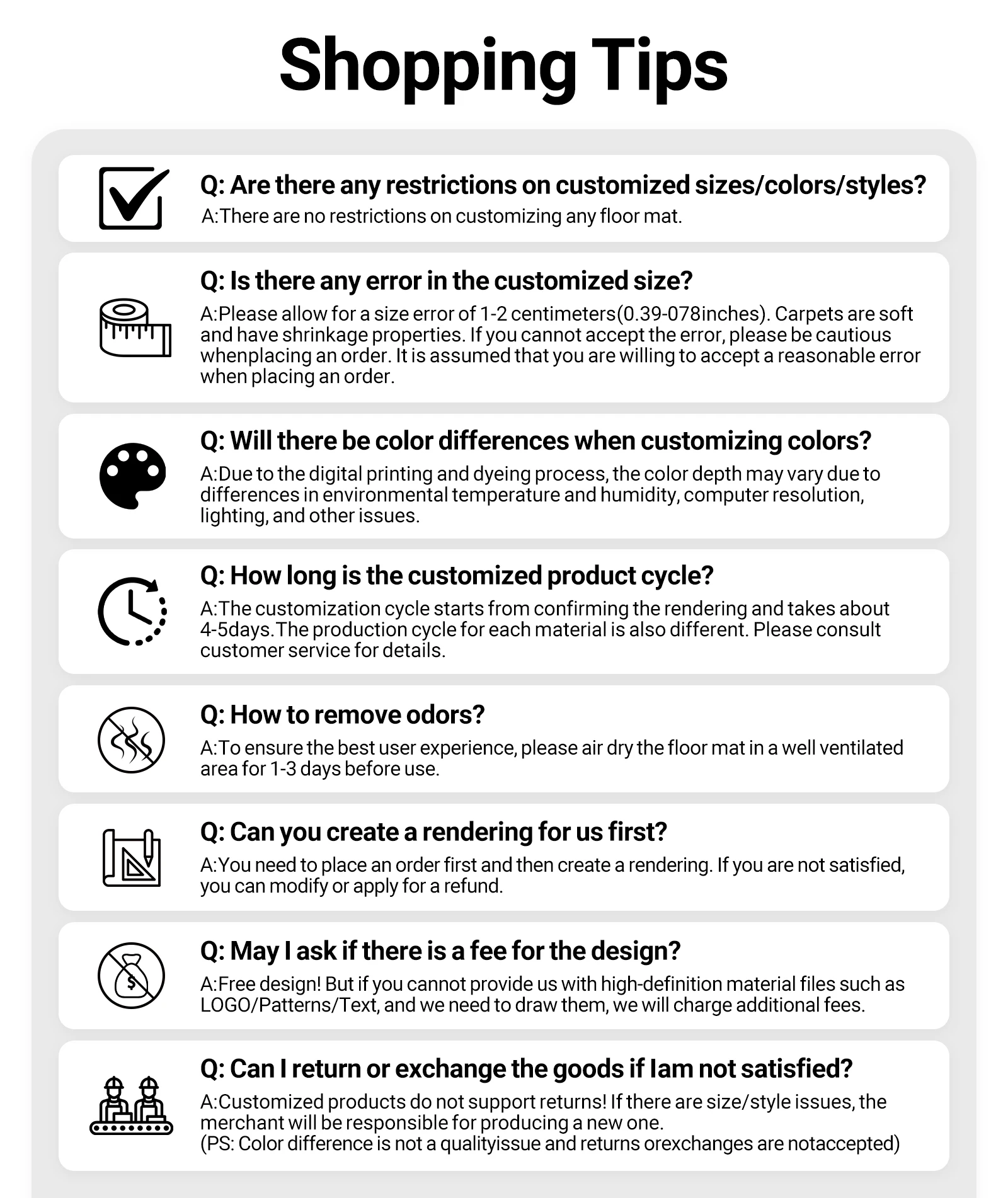 6.다른 도어 매트를 맞춤 제작해야 하는 경우 메시지나 이메일을 남겨 명확한 패턴을 보내주세요.