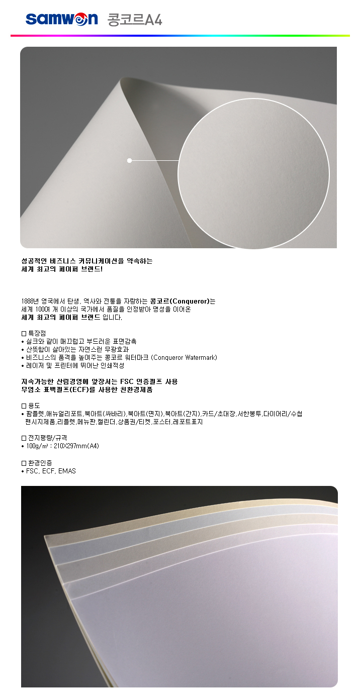 삼원)콩코르 레이드 우브 C 22( 02.High White A4 100g 20매) 콩코르지(A4 100g)