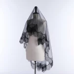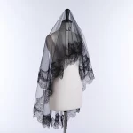 새로운 도착 신부 베일 한 레이어 여자 여자 블랙 만틸라 웨딩 베일 레이스 트림 할로윈 코스프레 의상 신부 Boda 2025