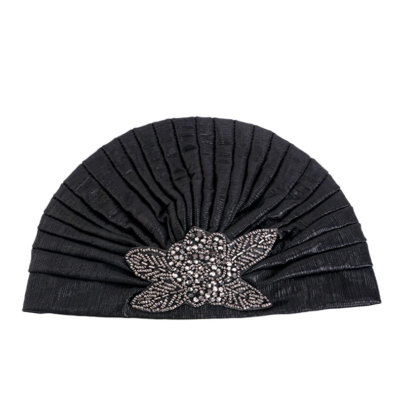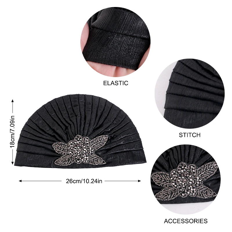 새로운 여성 라인 석 꽃 Pleated Turban 모자 민족 인도 모자 빈티지 미끄럼 방지 머리 밴드 Chemo 모자 Beanies 헤어 액세서리
