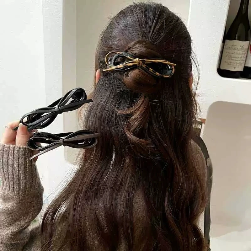 새로운 트위스트 헤어 클립 PU 보우 바레트 대형 헤어 클립 플라스틱 머리핀 스위트 데일리 모자를 쓰고 있죠 여성 헤어 액세서리