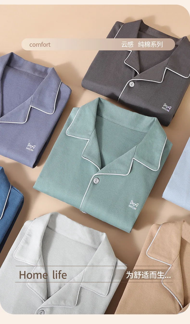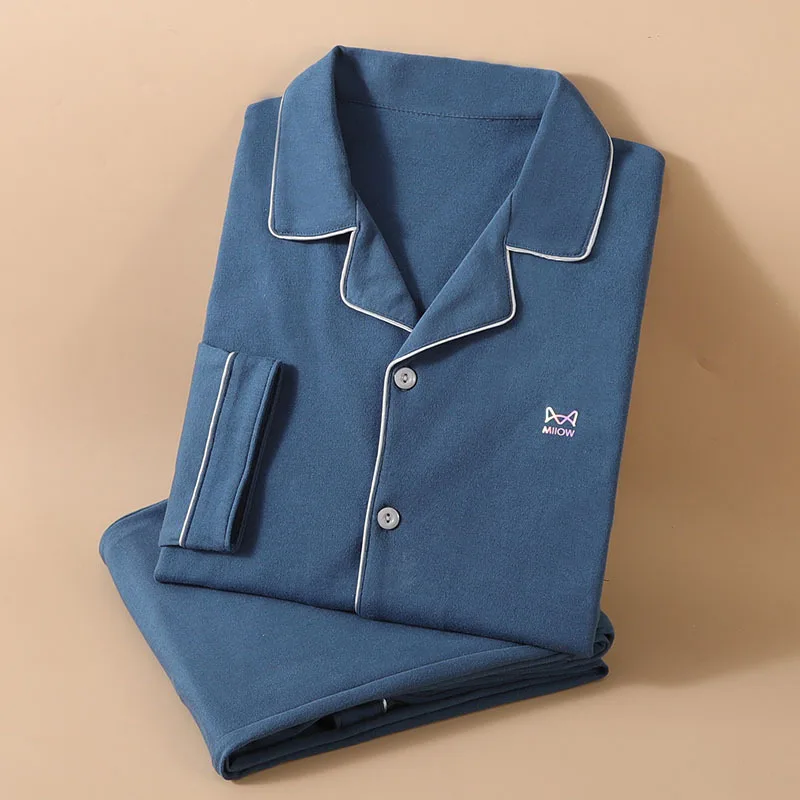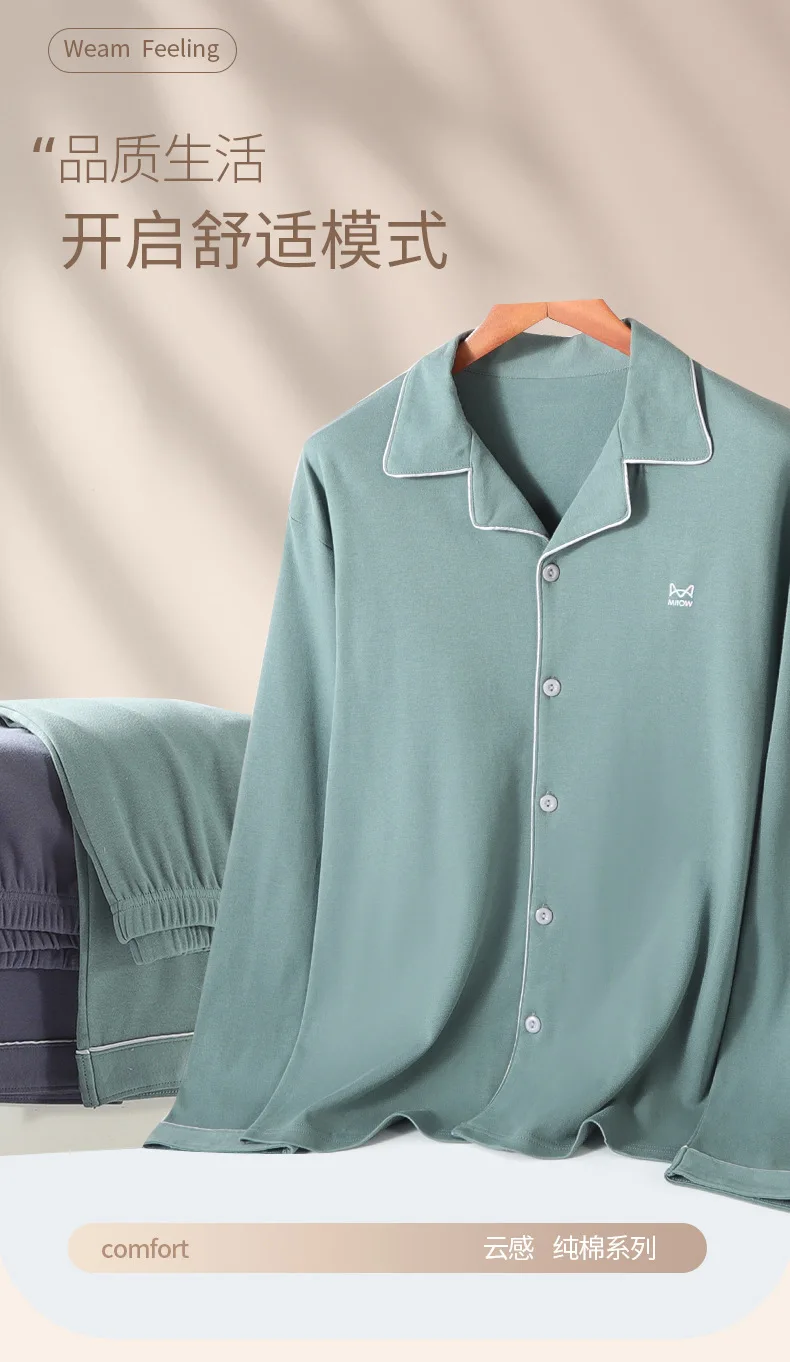 새로운 패션 브랜드 잠옷 정장 남성 긴팔 순수 코튼 봄 가을 신사 부드러운 코튼 여름 Loungewear 세트 남성 Nightcloth
