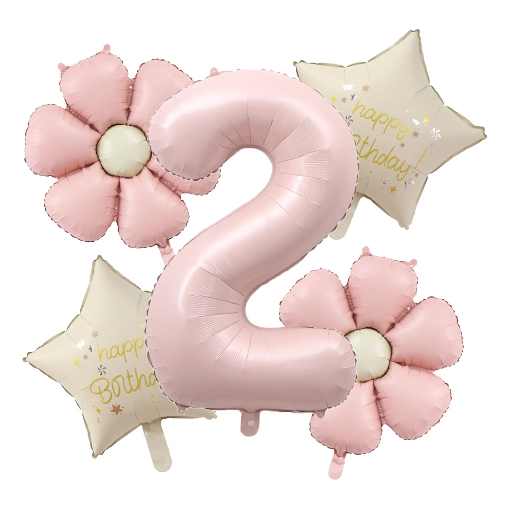 새로운 핑크 데이지 꽃 호일 풍선 Plumeria 공 웨딩 생일 파티 장식 베이비 샤워 사진 소품, 32 인치 핑크 번호