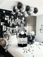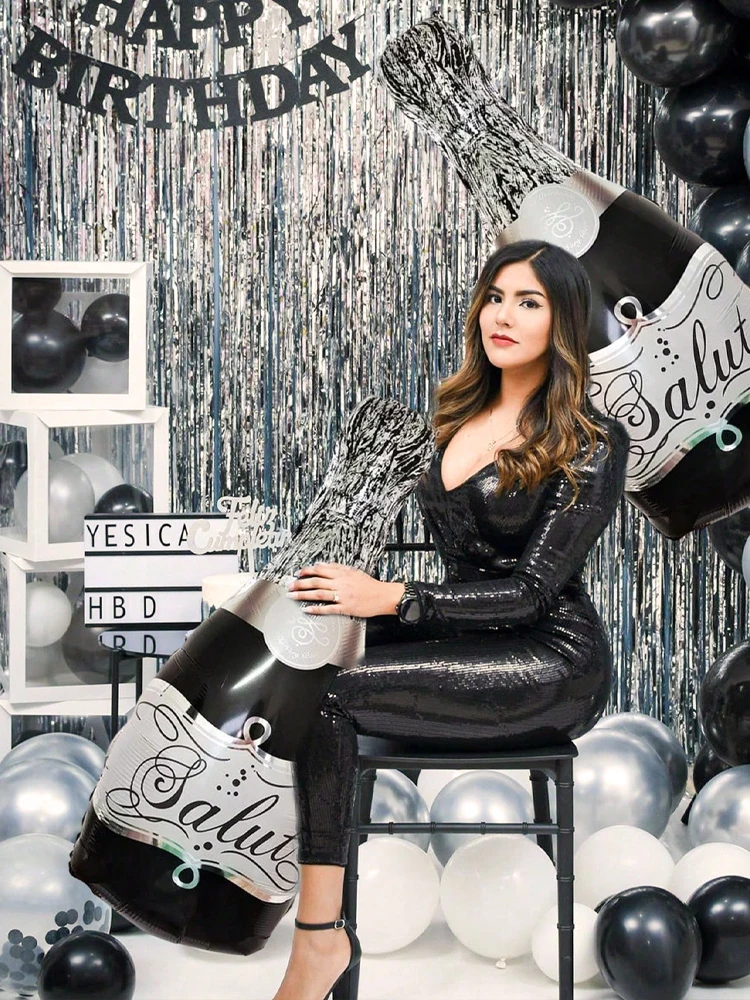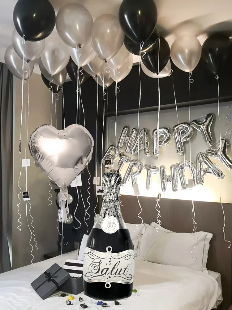 생일, 새해, 약혼, 기념일, 이벤트 축하 장식에 적합한 은색과 검정색 생일 파티 풍선