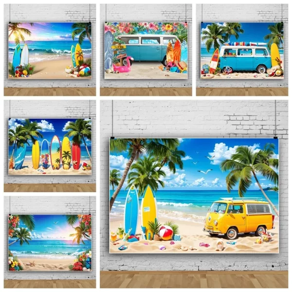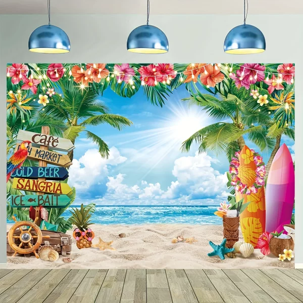 하와이 루아 파티 배경 열대 해변 배너 바 테마 종려나무 서핑 보드 여름 알로하 사진 배경 생일