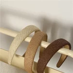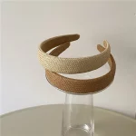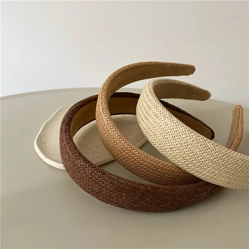 수제 직조 밀짚 머리띠 크로스 여성 여름 모자를 쓰고 있죠 넓은 등나무 헤어 밴드 매듭 야외 머리 장식 헤어 후프 솔리드