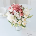 스크랩북을위한 인공 수국 꽃 실크 차 장미 꽃 봉오리 꽃병 홈 장식 웨딩 부케 DIY 모자 크리스마스 화환