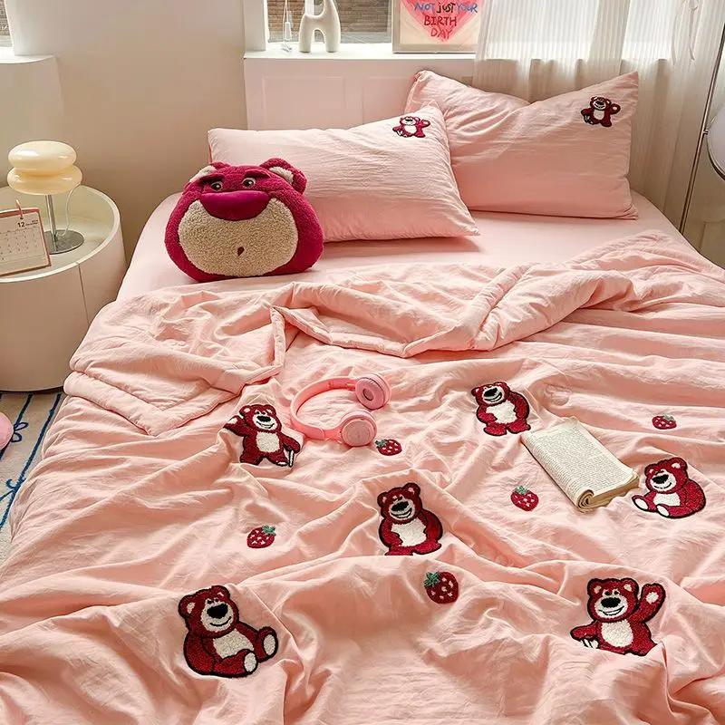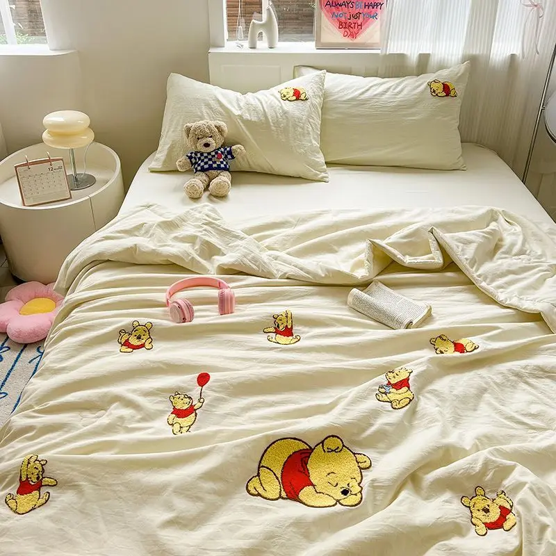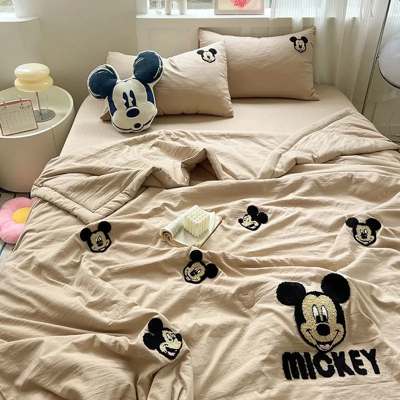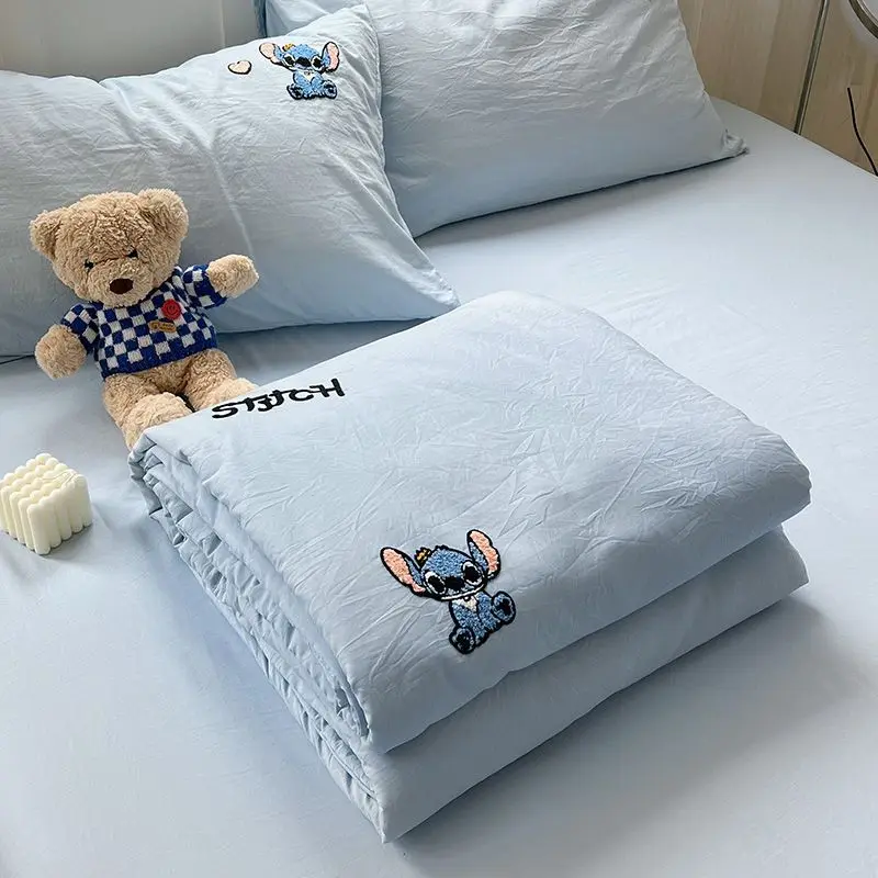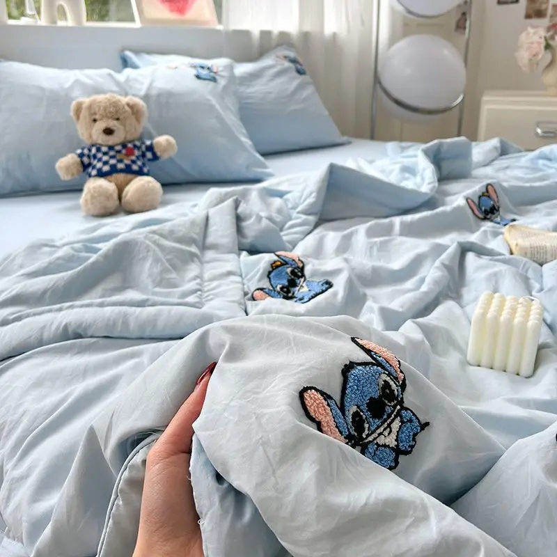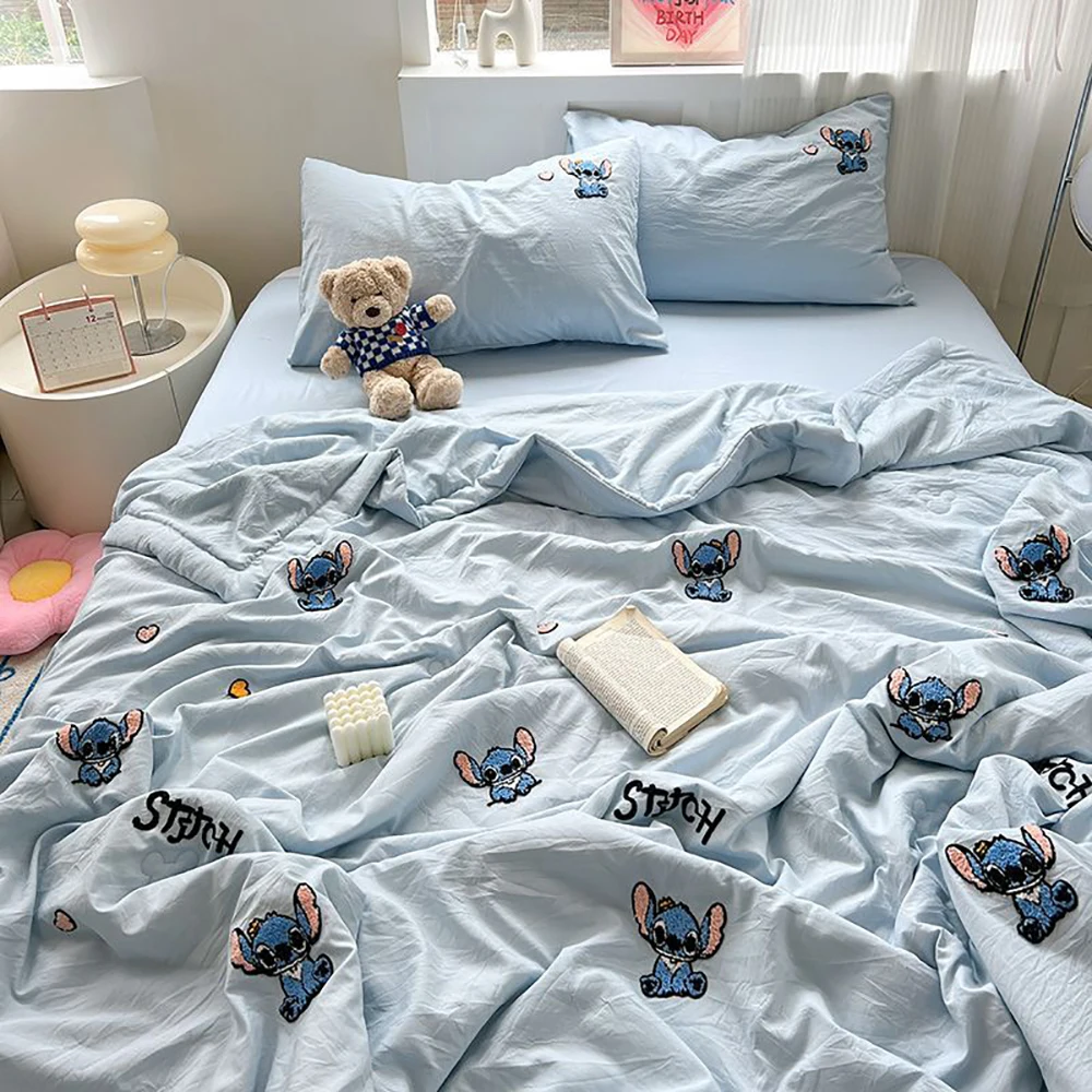 스티치 미키 미니 마우스 만화 3/4pcs 이불 세트 어린이를위한 얇은 에어컨 및 플랫 시트 담요 베개 커버