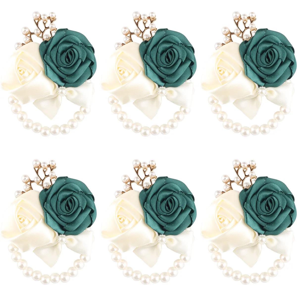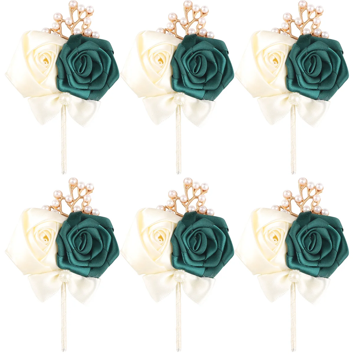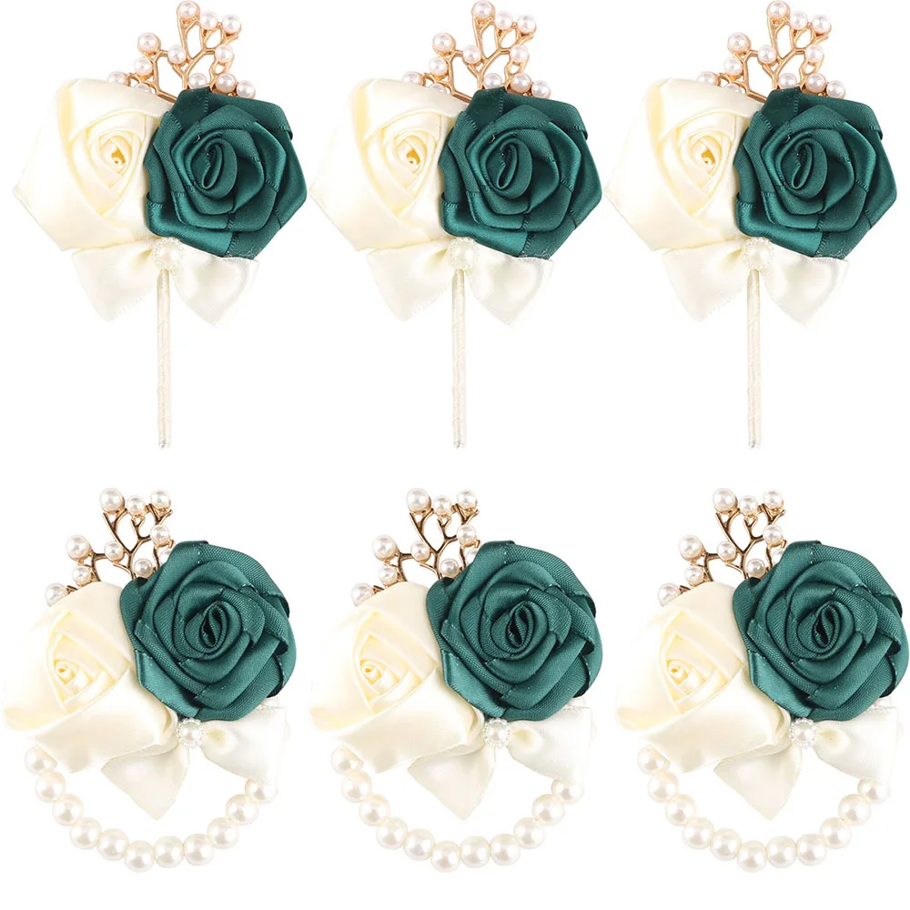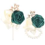 신부 신랑 및 손님용 럭셔리 다크 그린 로즈 웨딩 코사지 및 부토니에 세트, 결혼식 및 무도회, “프리미엄”