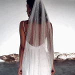 짧은 웨딩 베일은 진주와 비즈로 장식된 섬세한 디자인이 특징이며 어떤 신부 의상에도 우아한 느낌을 더해줍니다.