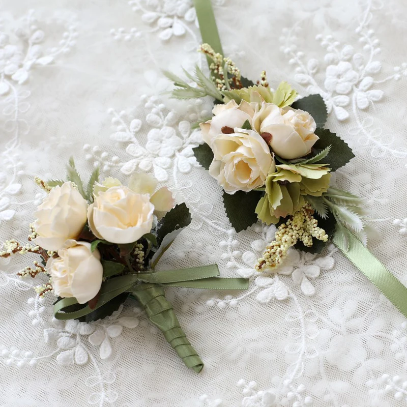 실크 인공 꽃 파티 웨딩 장식, 신랑 신부 들러리 나비 디자인, 손목 꽃, 손 꽃, 신제품
