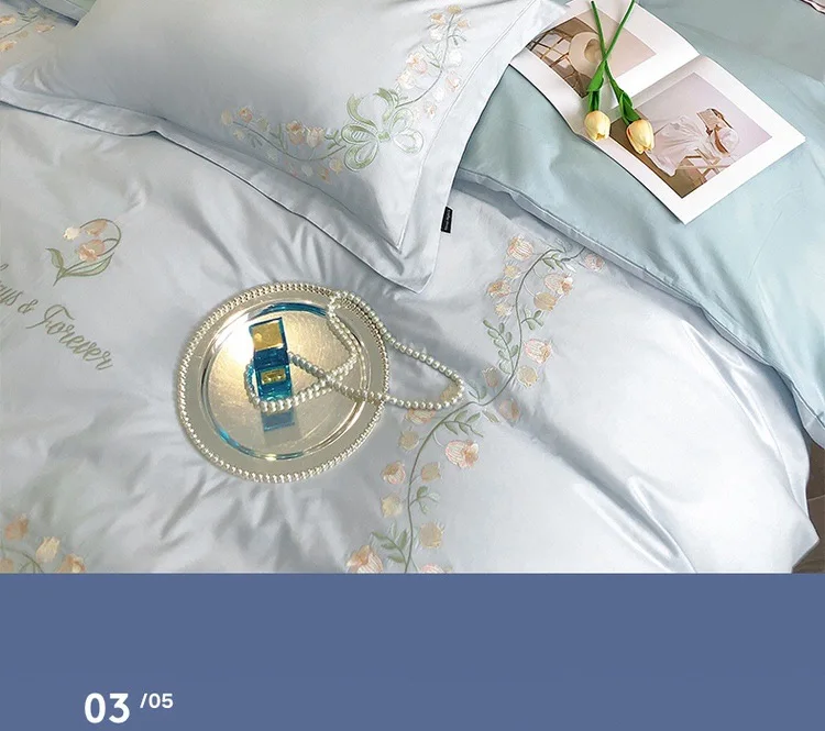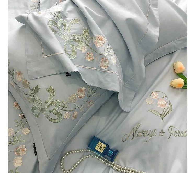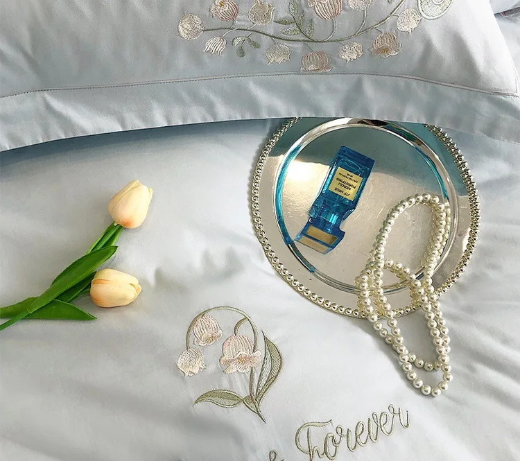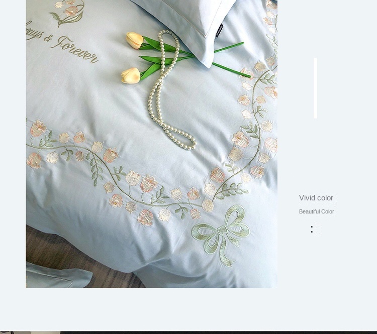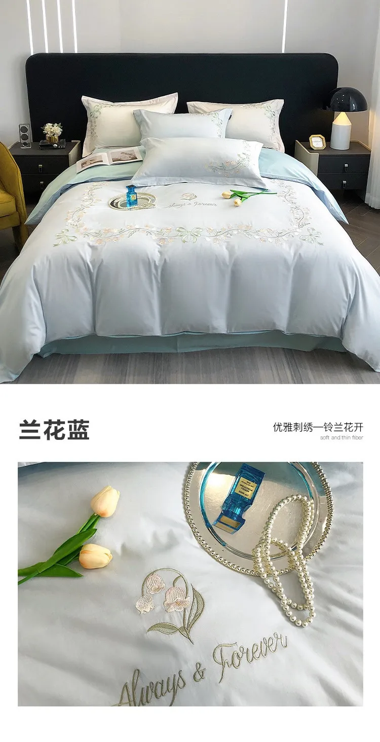 심플 자수 침구 릴리, 고급스러운 심플하고 가벼운 피부 친화적 코튼 4 종 세트, 신상