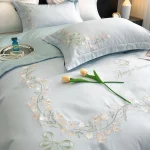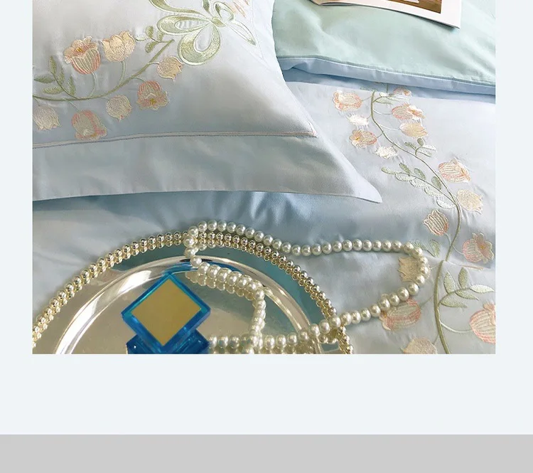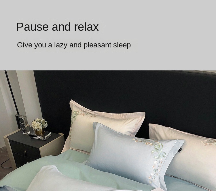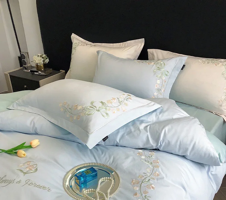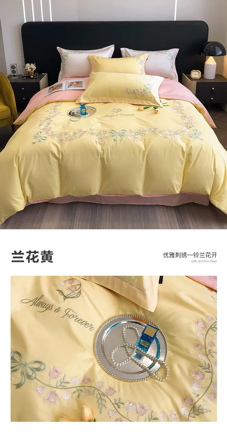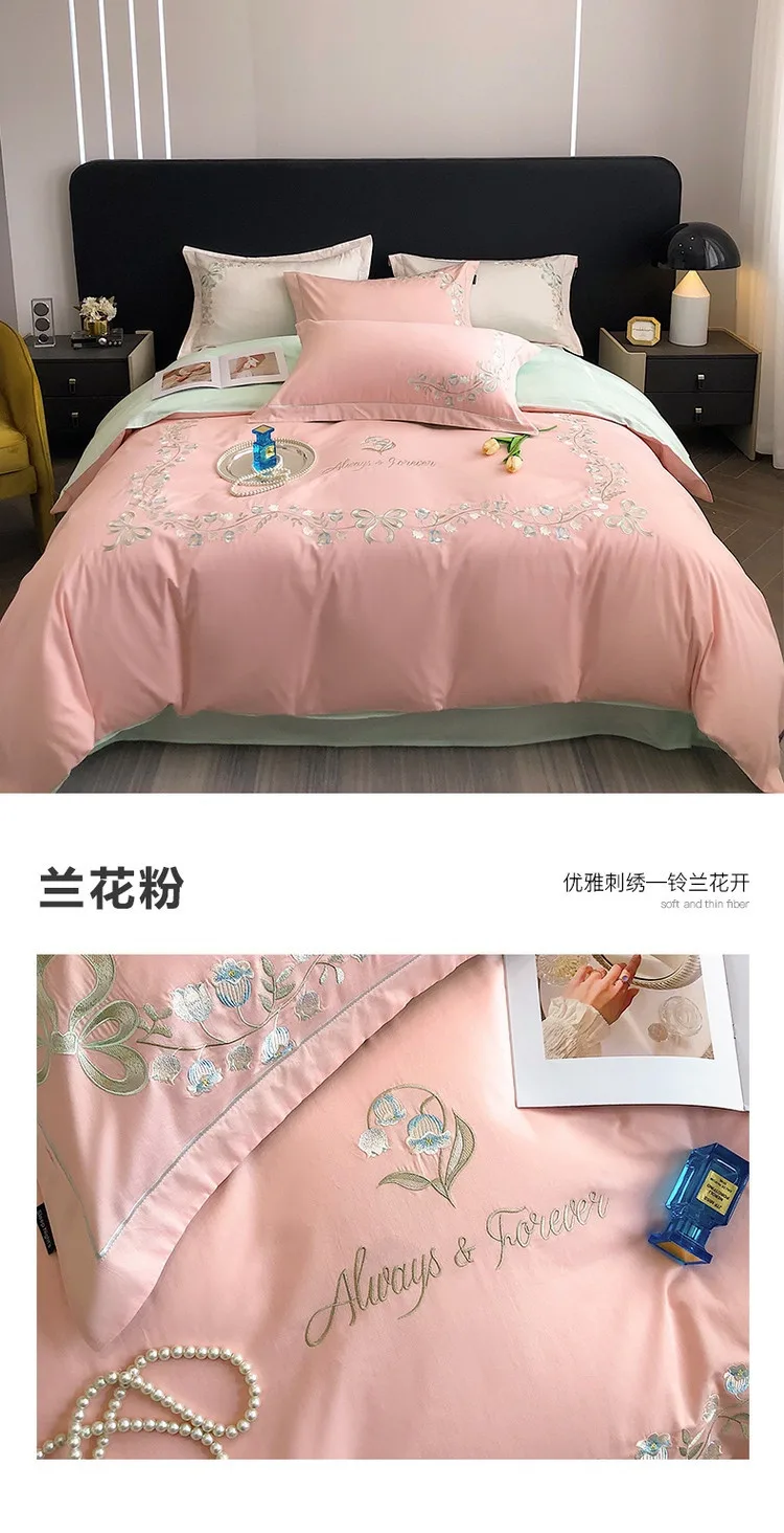 심플 자수 침구 릴리, 고급스러운 심플하고 가벼운 피부 친화적 코튼 4 종 세트, 신상