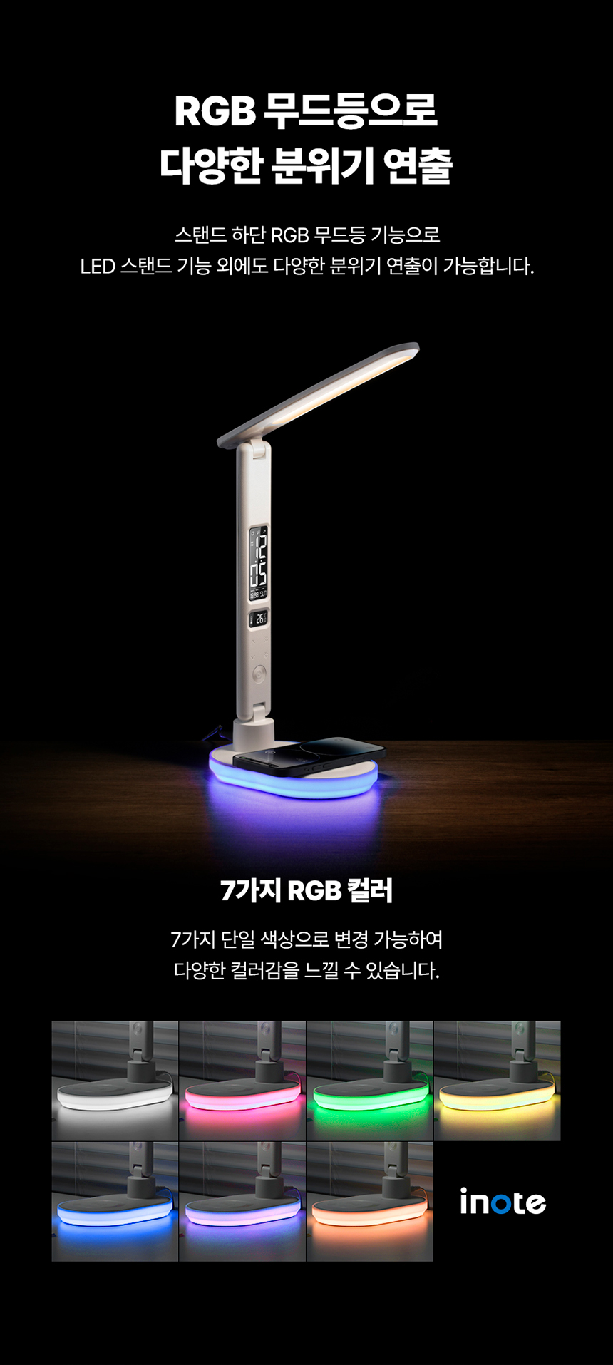 아이노트 스마트폰 이어폰 무선 충전기 독서등 무드등 알람 시계 삼성 LED 사용 스탠드 조명