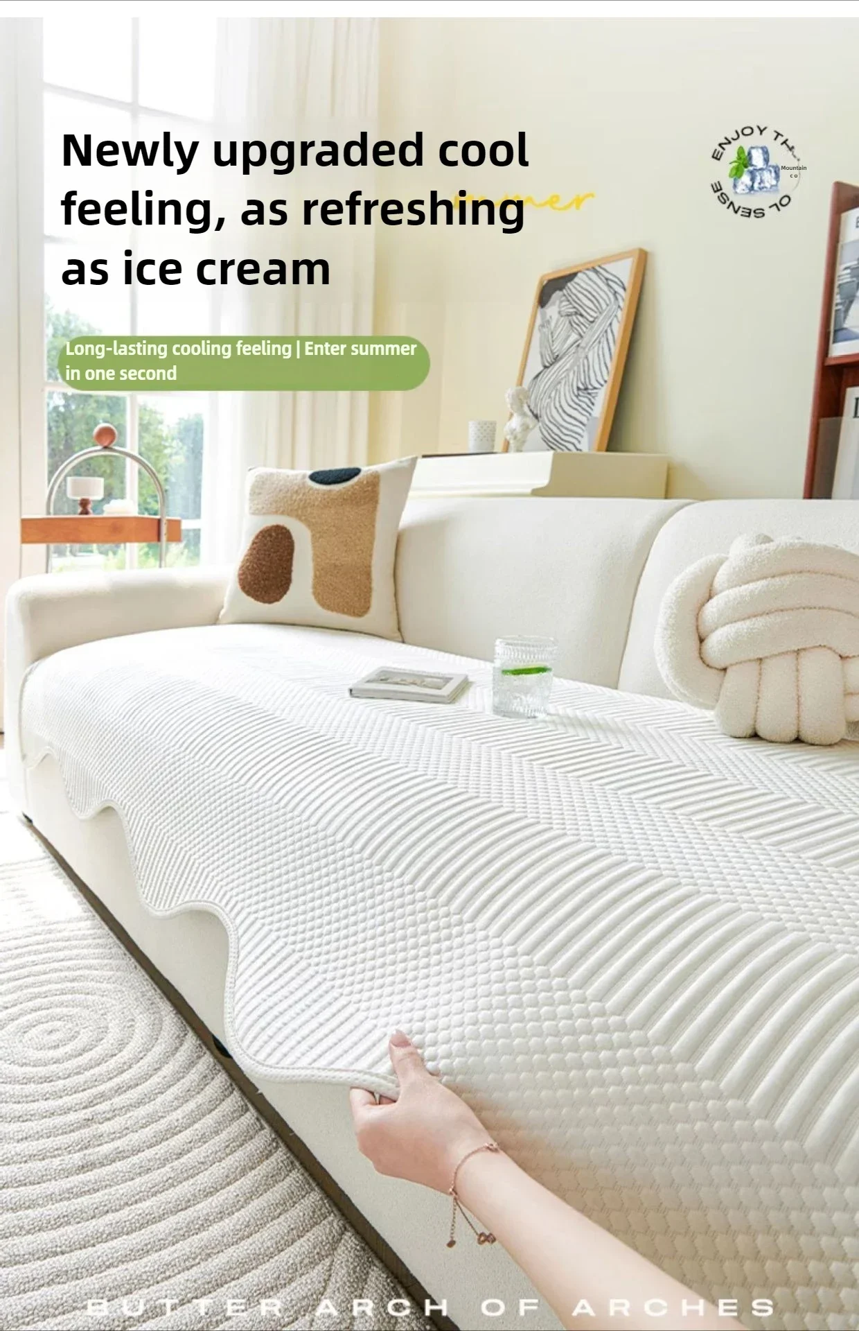 1. 제품 재질 : 전면 【 아이스 실크패브릭】, 역방향 【친환경 폴리에스테르 섬유/라텍스 미끄럼 방지 입자】