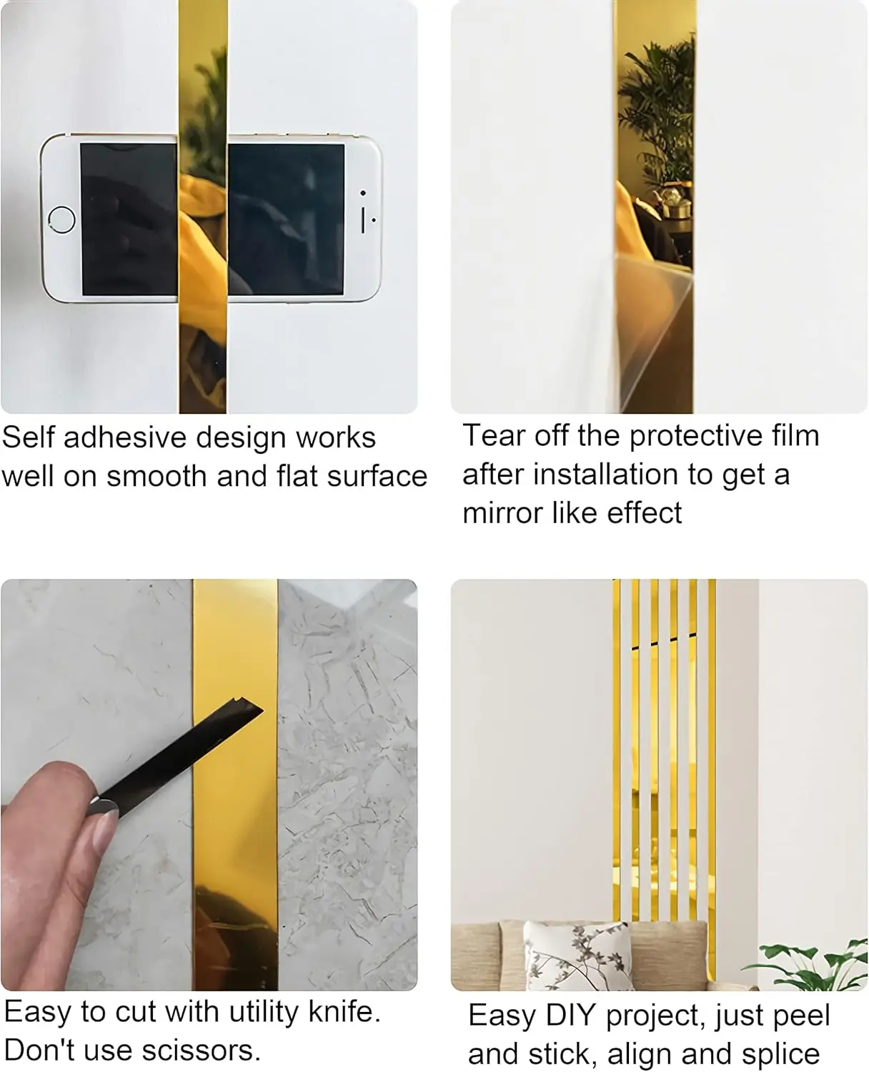 - acrylic wall sticker: 3D Strips Mirror Wall Sticker