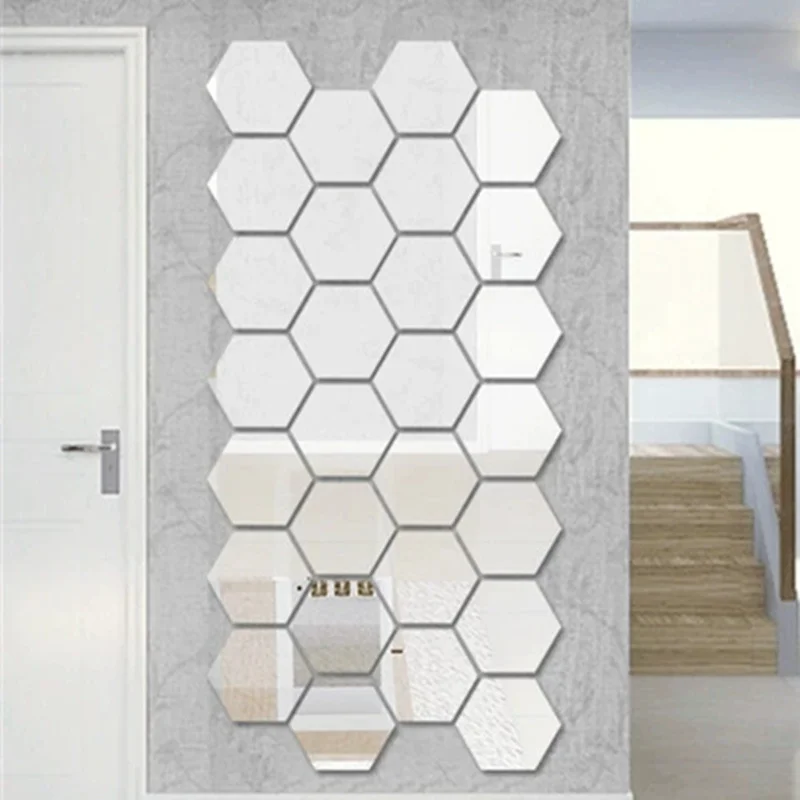 아크릴 3D 거울 장식 벽 스티커, 벽 데칼, 육각형 접착제, 탈착식 미니 거실, 셀프 룸, 침실 아트, 12 개
