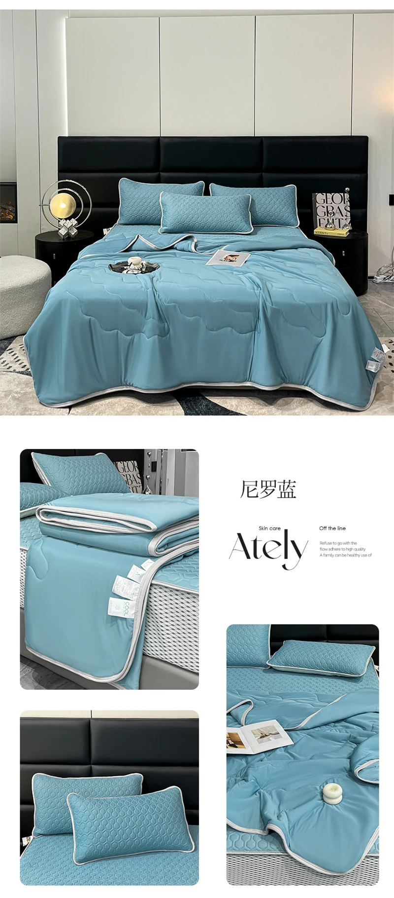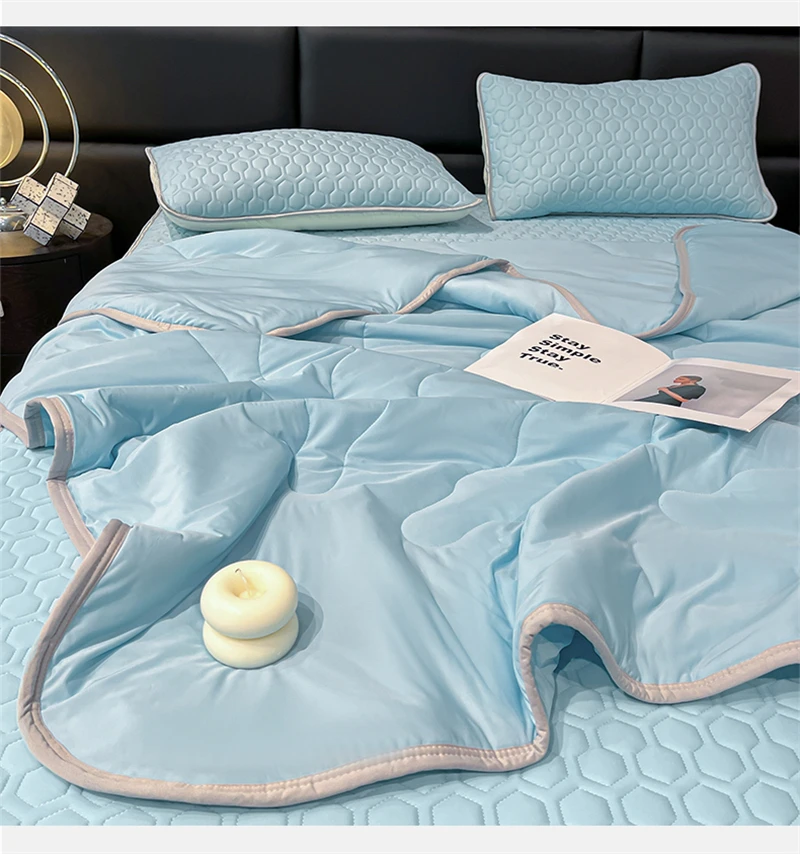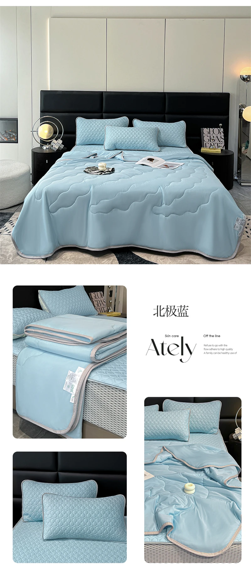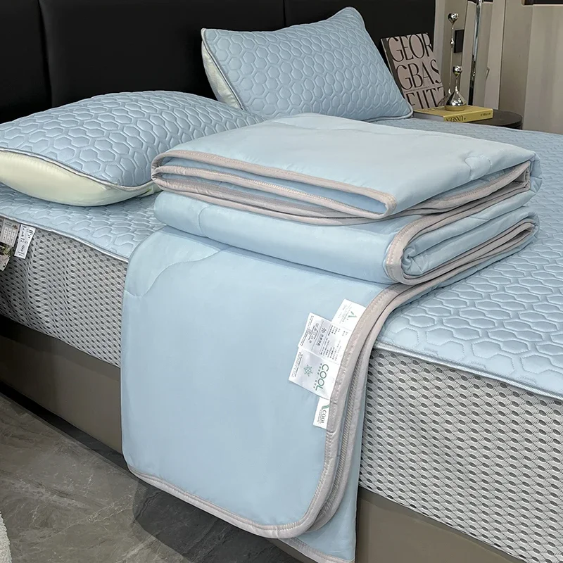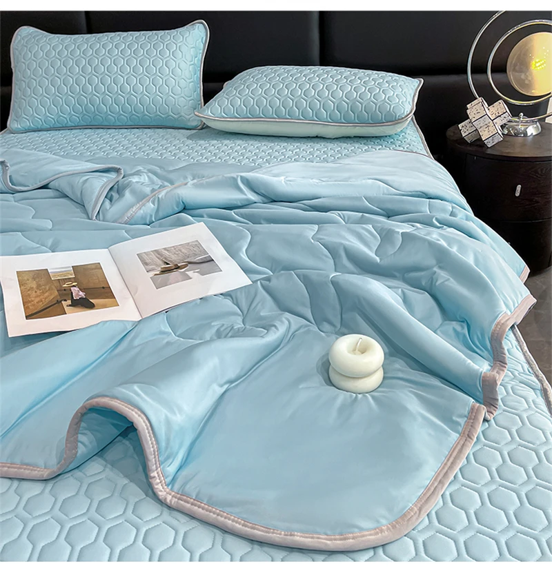 양면 시원한 느낌 여름 퀼트 세트, 퀸 부드러운 아이스 실크 쿨링 담요, 여름 편안한 시트 및 베갯잇