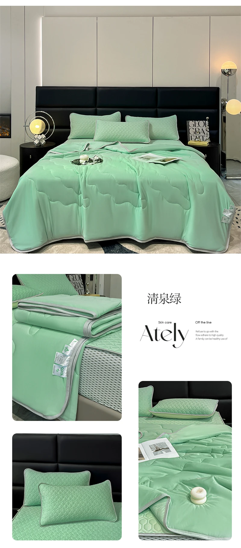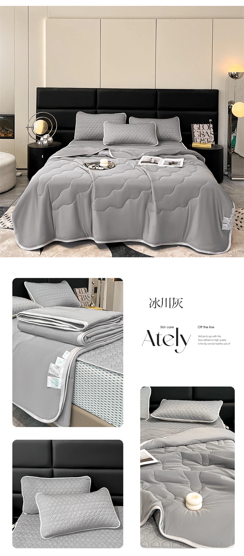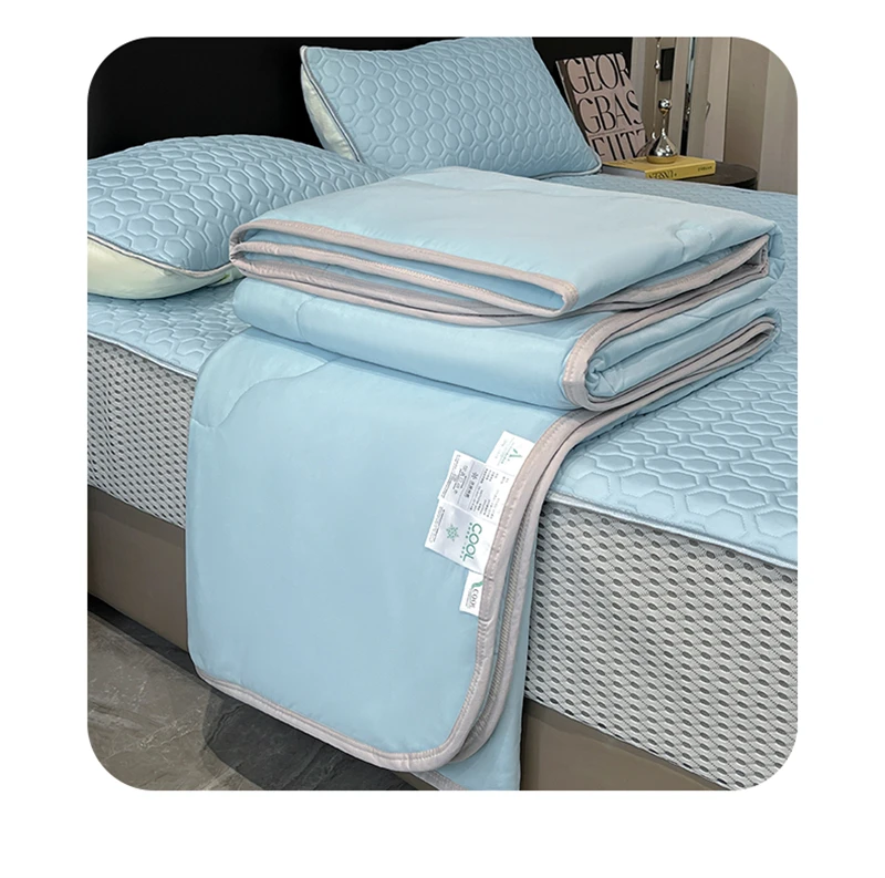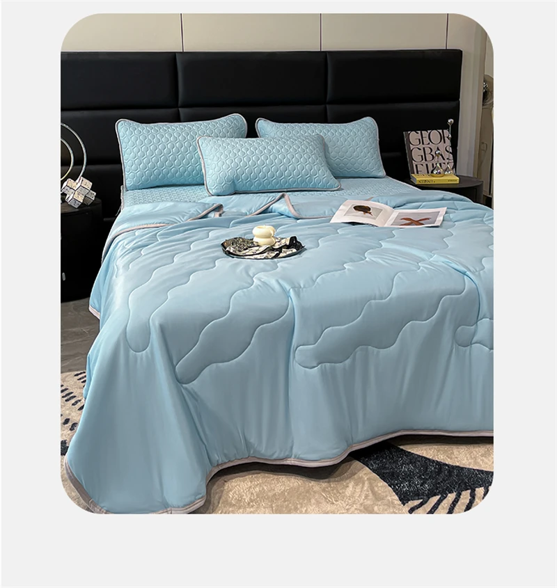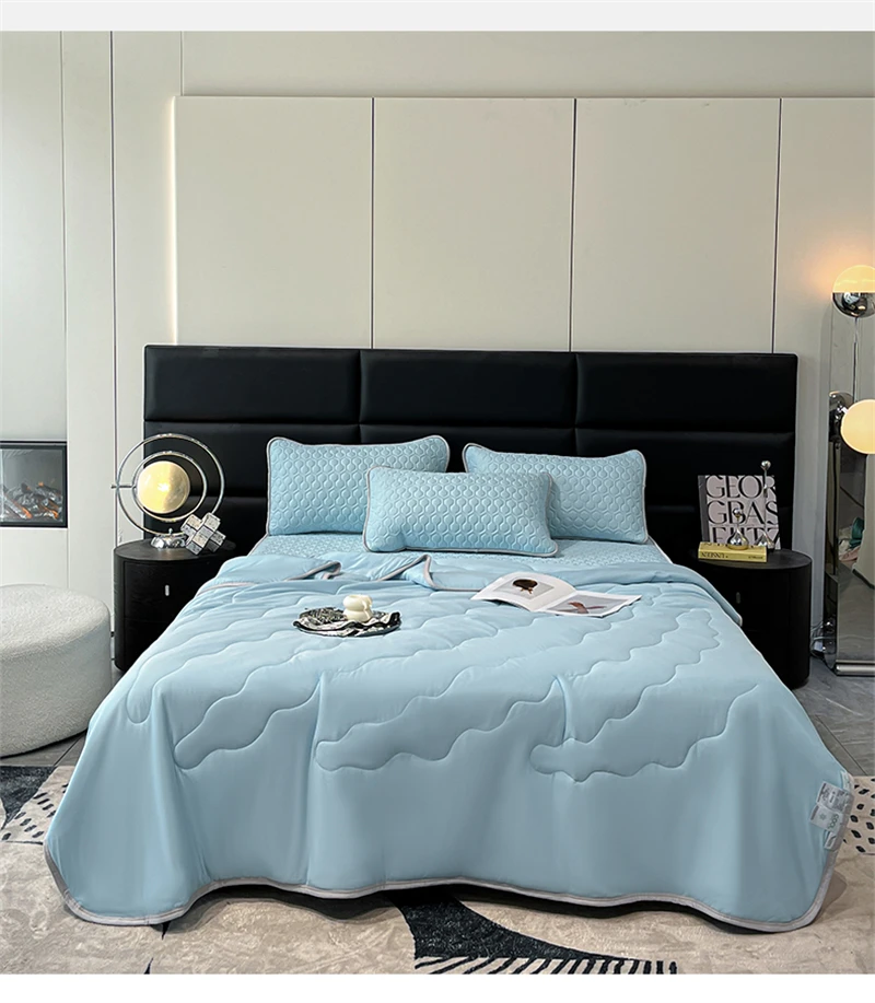 양면 시원한 느낌 여름 퀼트 세트, 퀸 부드러운 아이스 실크 쿨링 담요, 여름 편안한 시트 및 베갯잇
