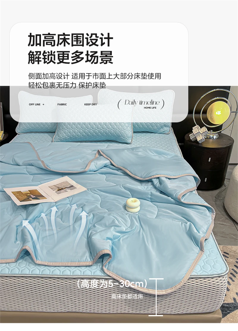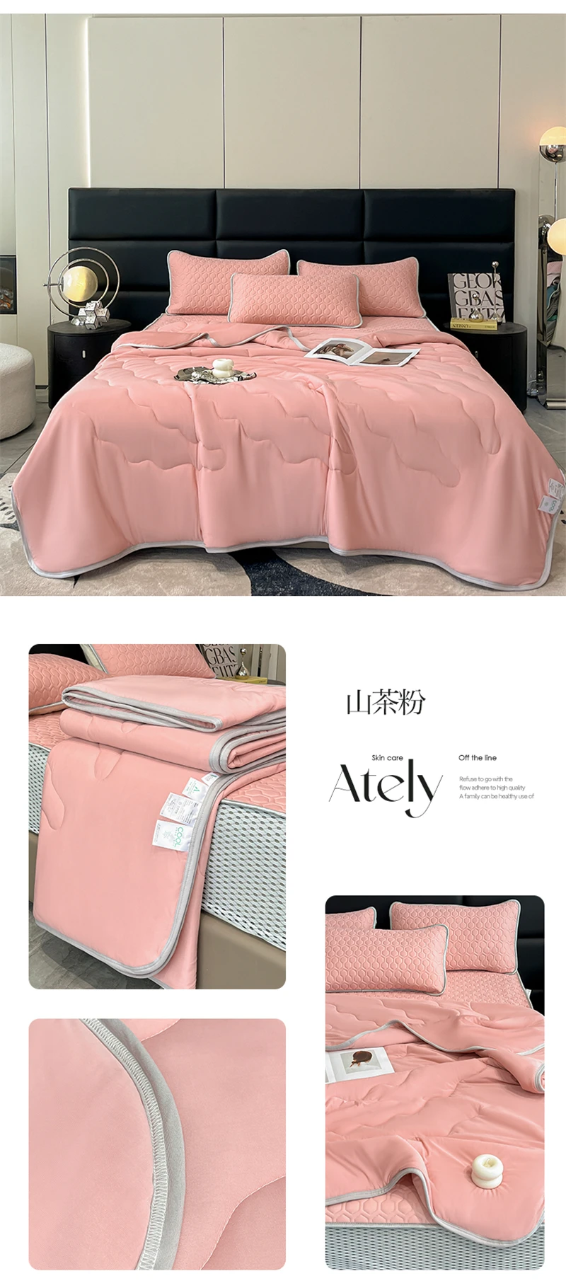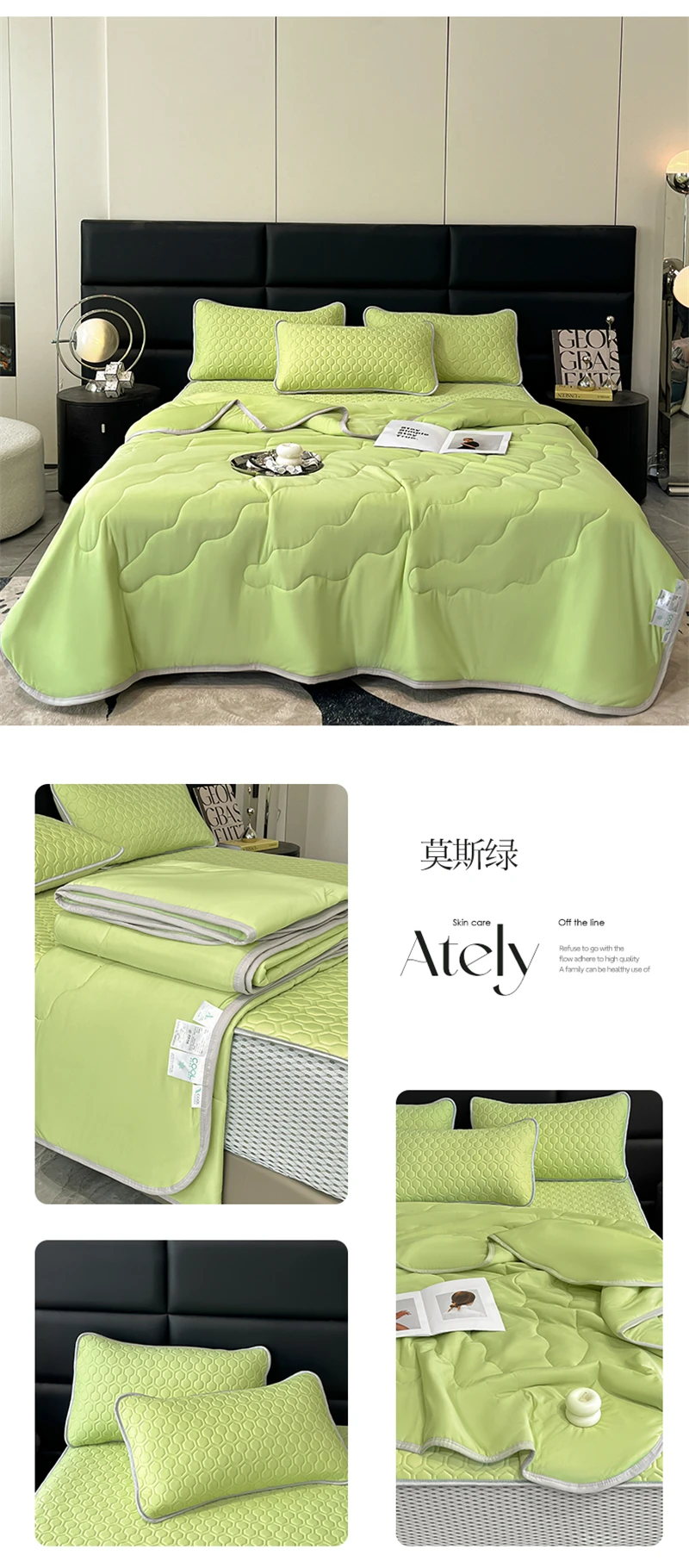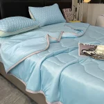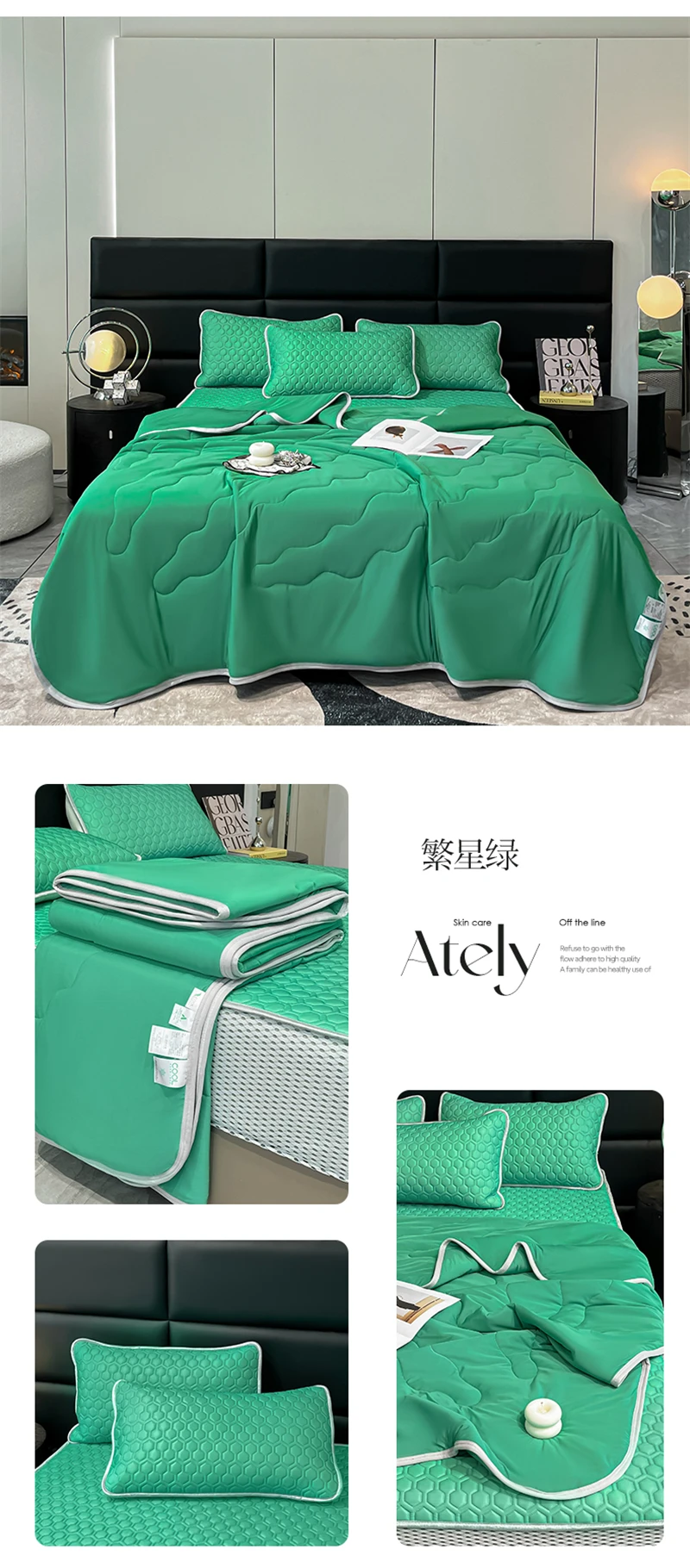양면 시원한 느낌 여름 퀼트 세트, 퀸 부드러운 아이스 실크 쿨링 담요, 여름 편안한 시트 및 베갯잇