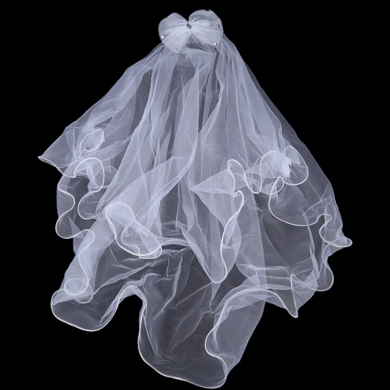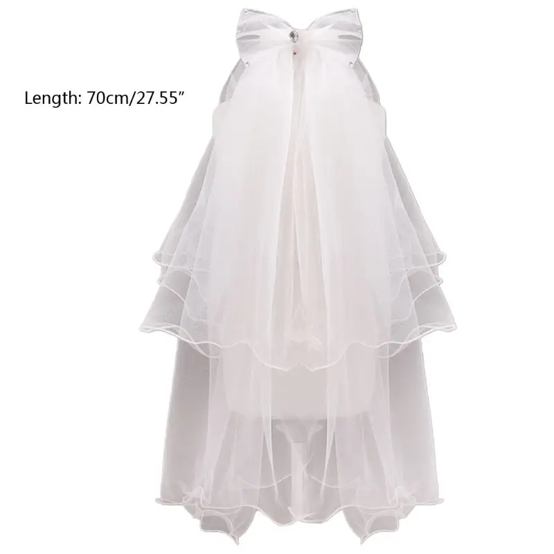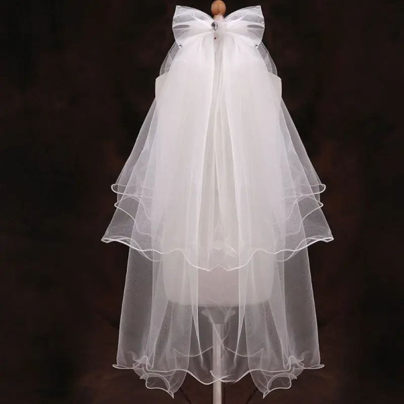 어린이 꽃 여아 패션 헤드피스 라인스톤 리본매듭 웨딩 베일 Com 634D