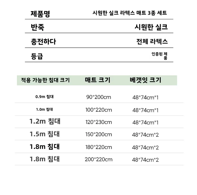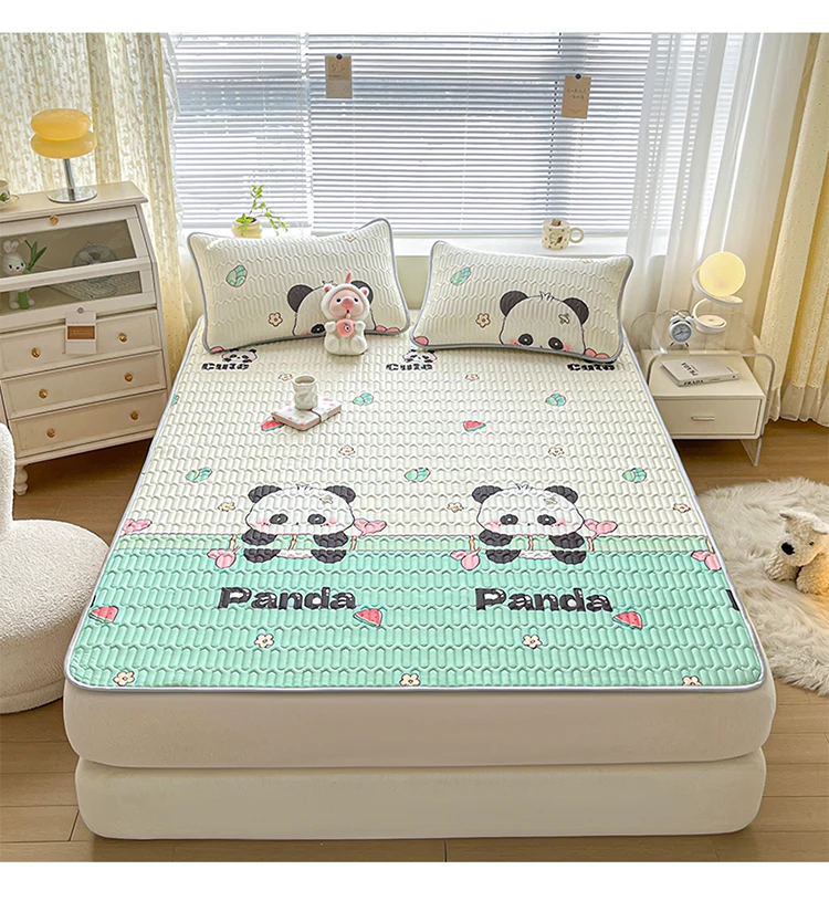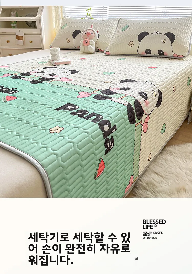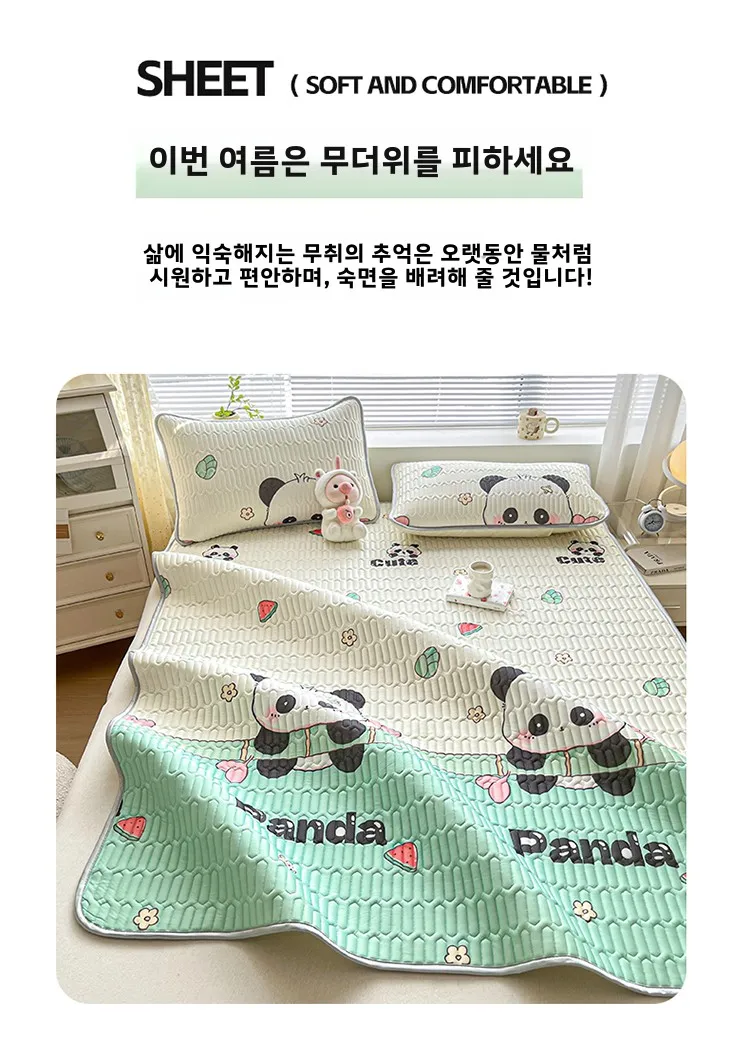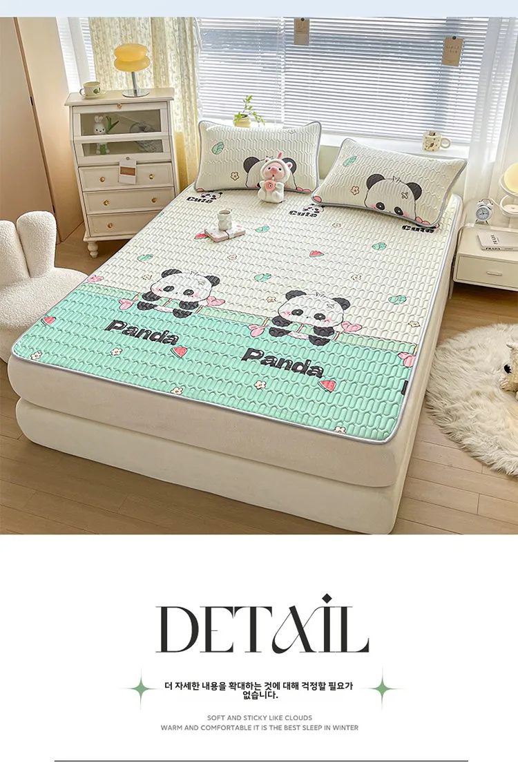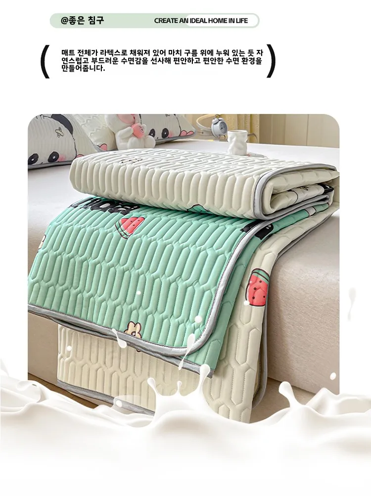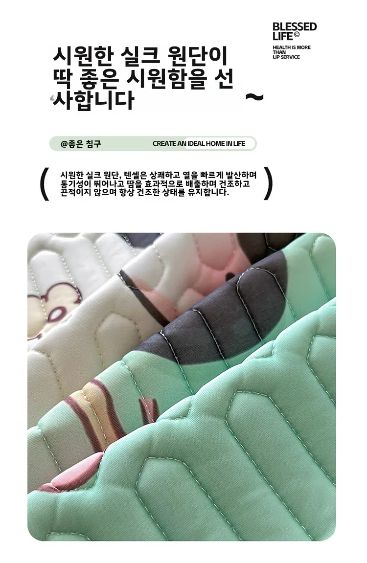 여름용 라텍스 쿨링 매트리스 패드 세트 아이스 실크 논슬립 매트 .5m 침대 이불 커버 이불솜 경량 담요