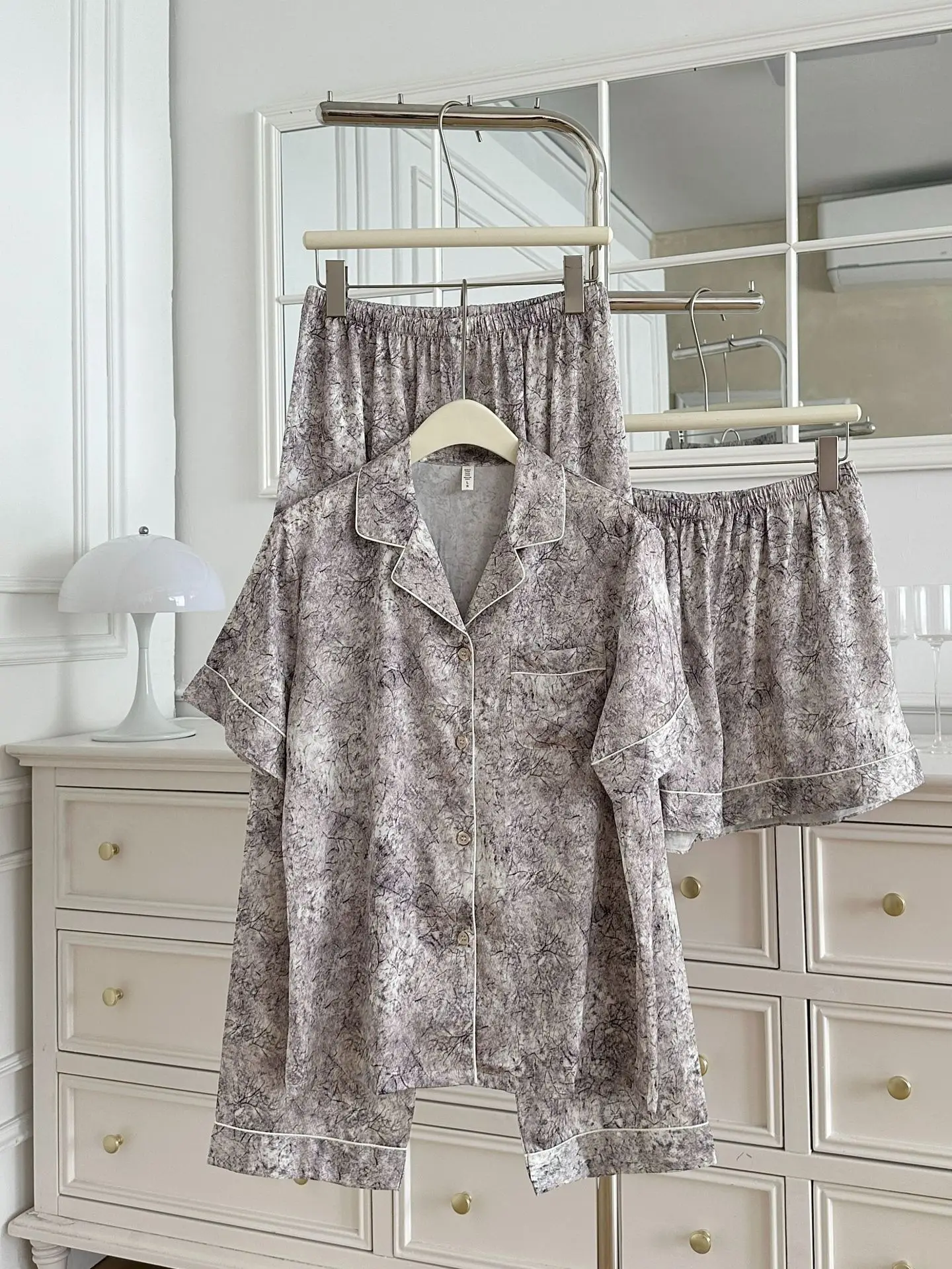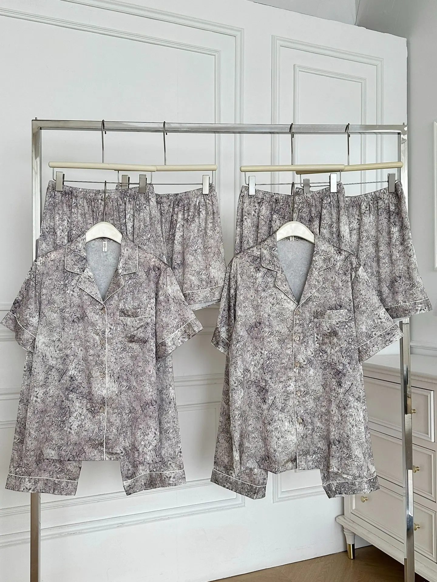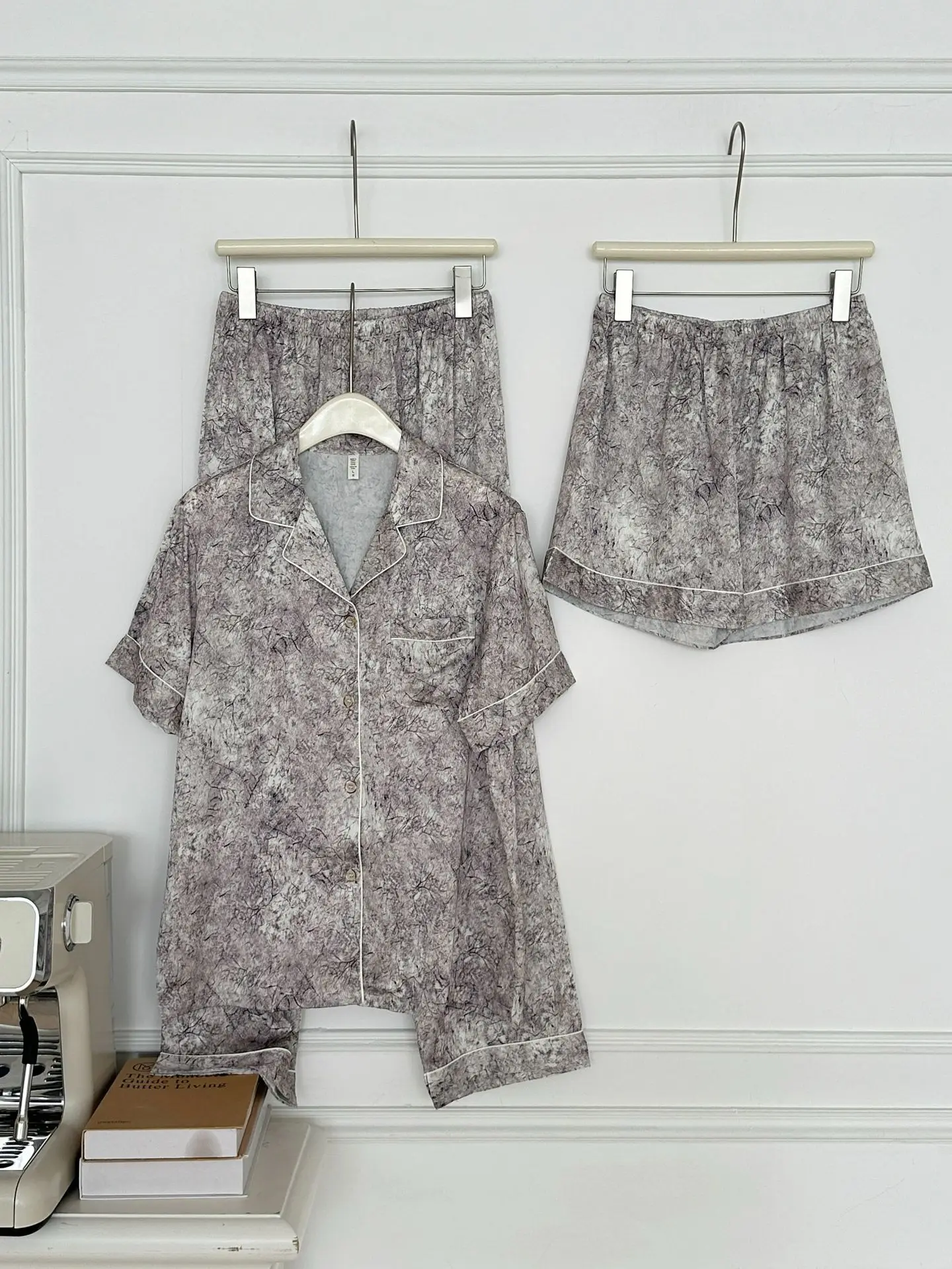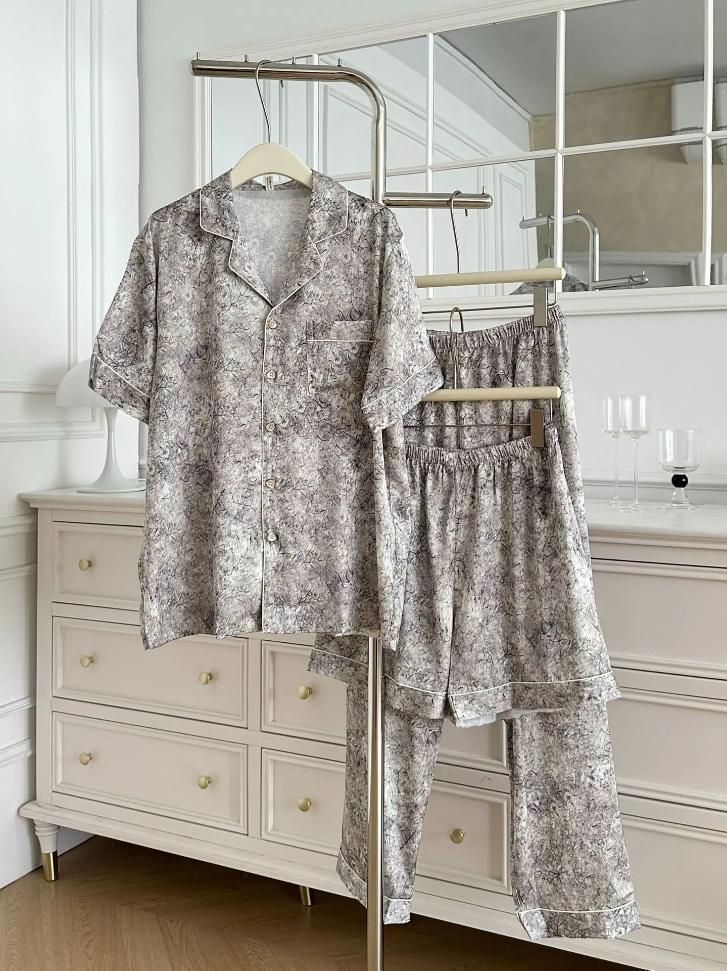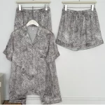 여름 실크 새틴 3PCS 잠옷 세트 패션 커플 잠옷 짧은 소매 반바지 바지 정장 잠옷 느슨한 Homewear Loungewear