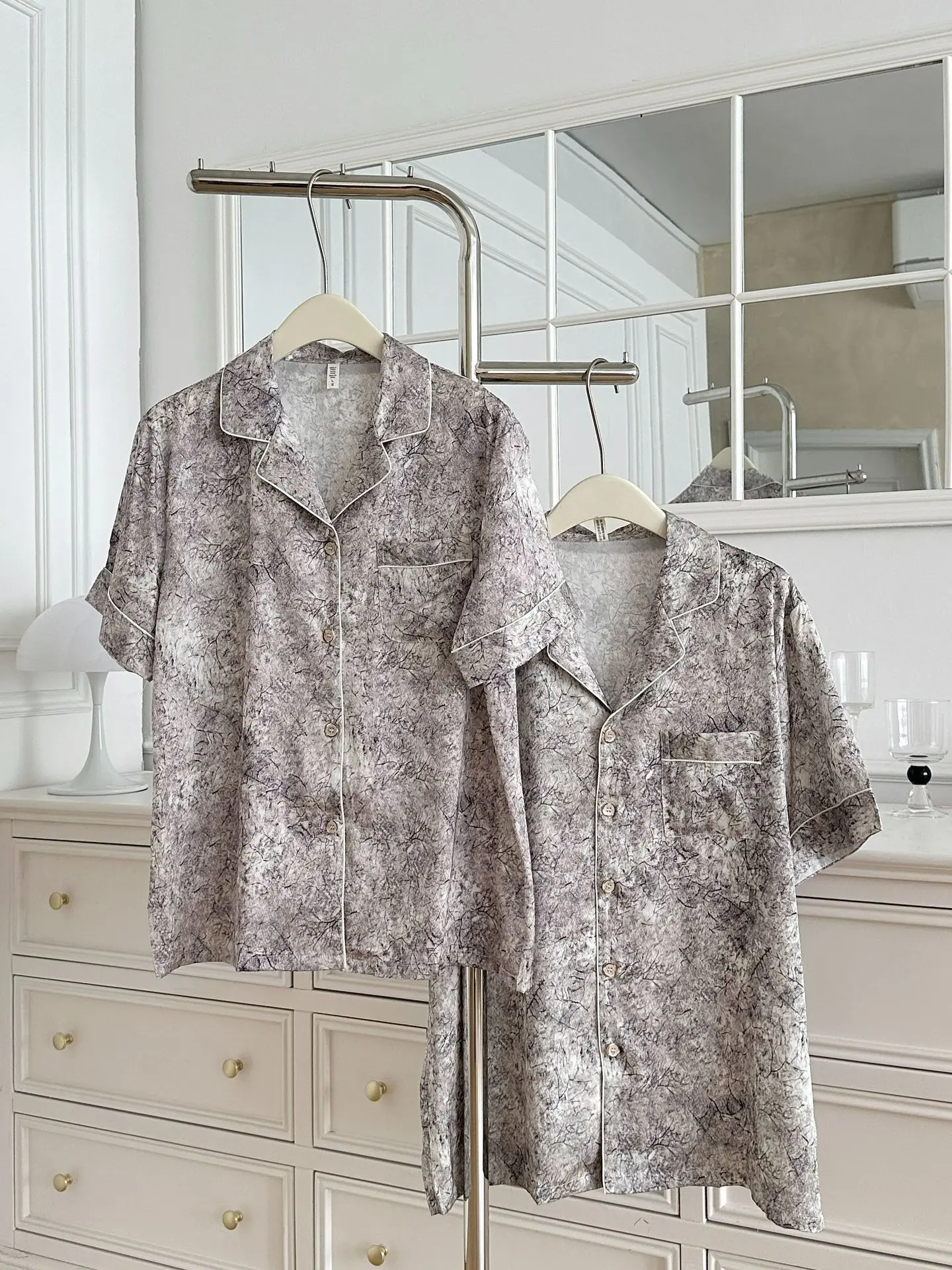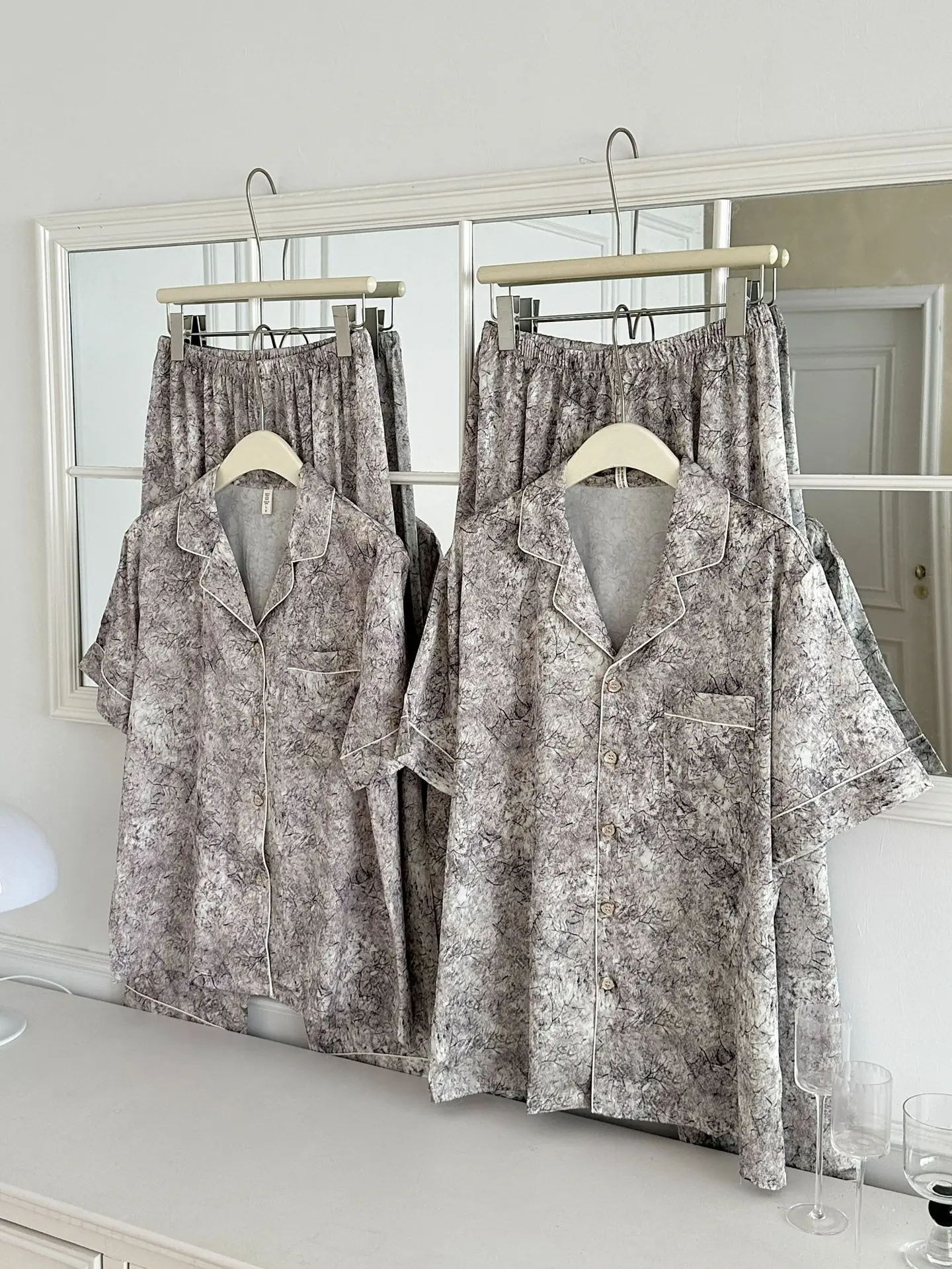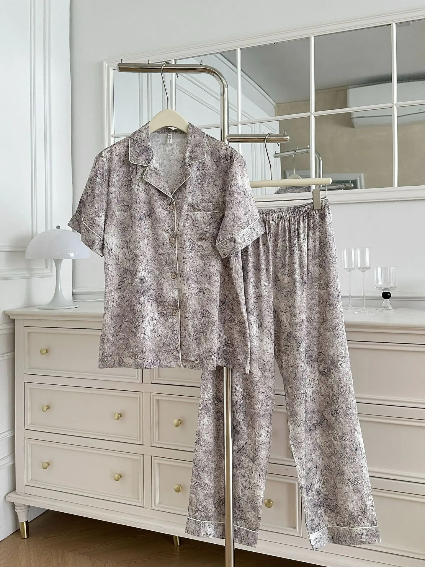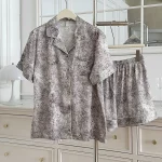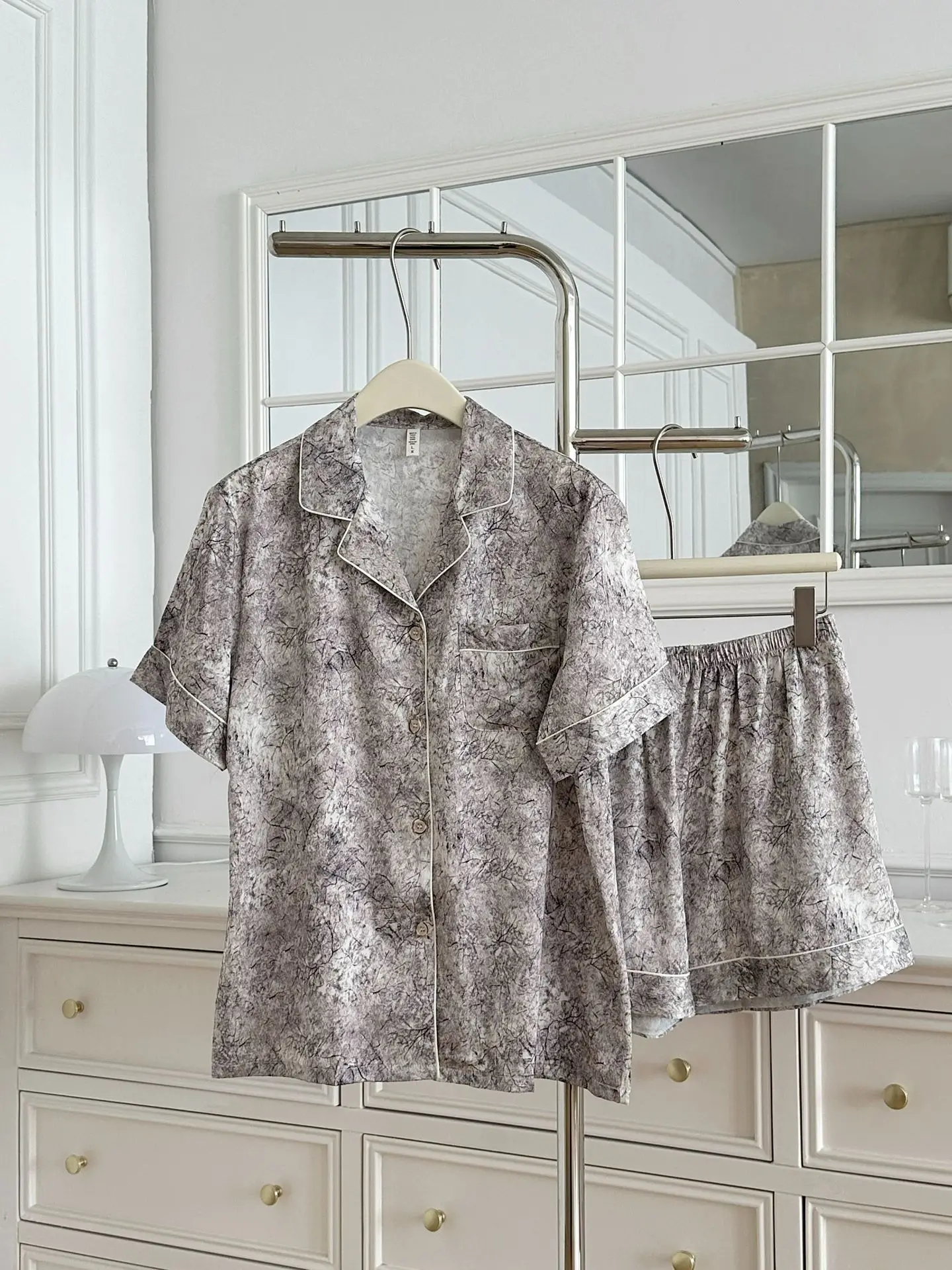 여름 실크 새틴 3PCS 잠옷 세트 패션 커플 잠옷 짧은 소매 반바지 바지 정장 잠옷 느슨한 Homewear Loungewear