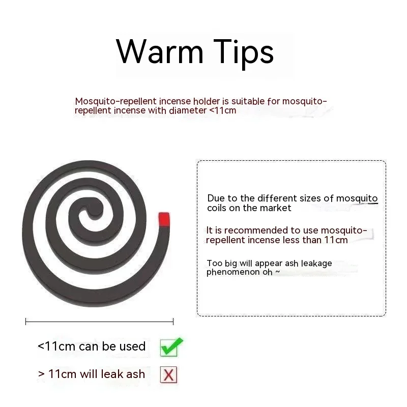 【안전하고 사용하기 쉬움】 모기향을 안전하고 편리하게 태울 수 있도록 설계되었습니다.코일은 홀더 중앙에 있는 후크로 지지할 수 있어 인화성 물질이 점화된 모기향 위로 떨어지는 것을 효과적으로 방지할 수 있으며, 하단에 홈이 있어 수집 및 청소가 쉽습니다.
