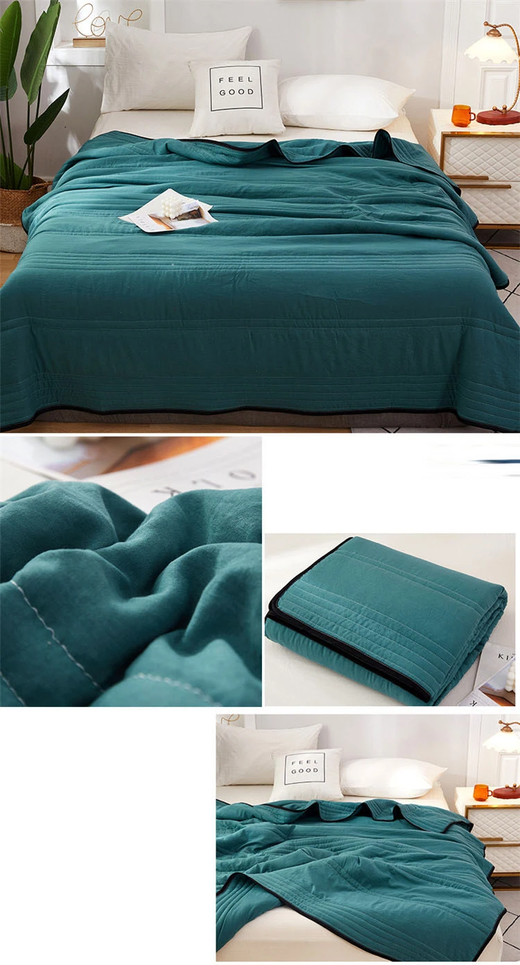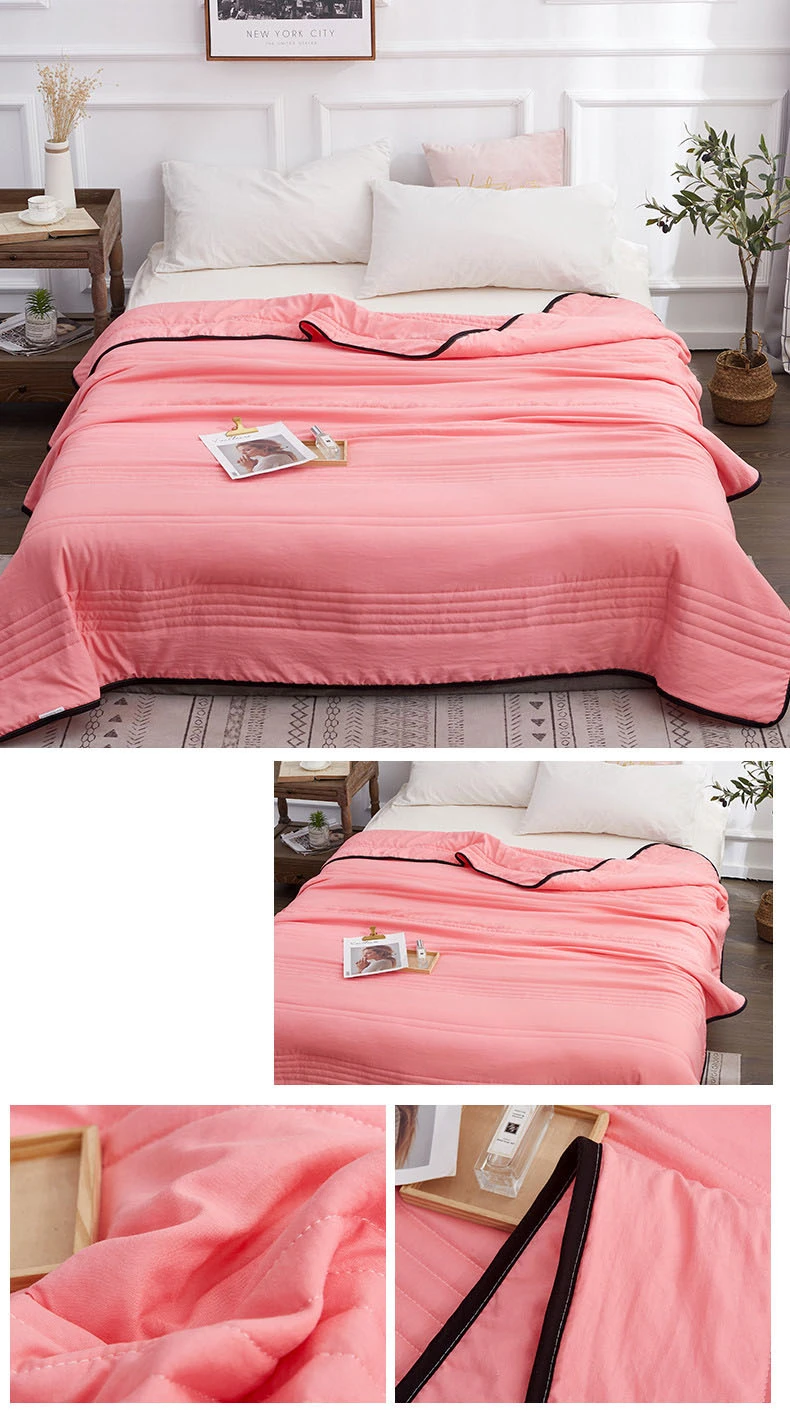 여름 에어 컨디션 퀼트 얇은 스트라이프 경량 이불 전체 퀸 통기성 소파 사무실 침대 여행 퀼트 담요 던지기