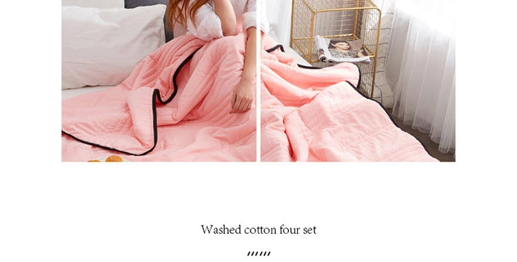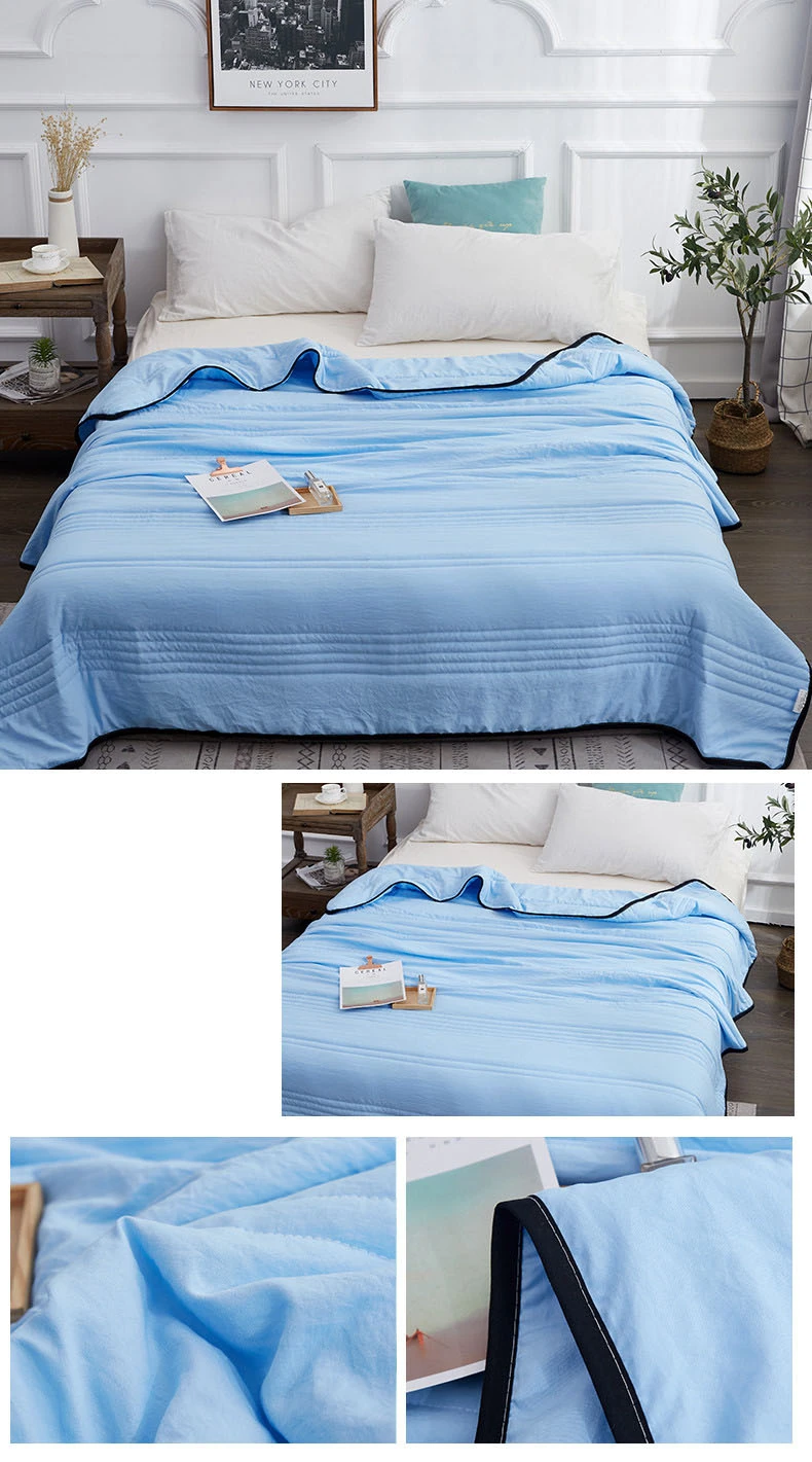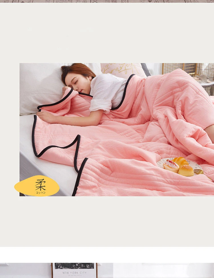 여름 에어컨 이불 얇은 스트라이프 경량 이불 전체 퀸 통기성 소파 사무실 침대 여행 이불 던지기 담요