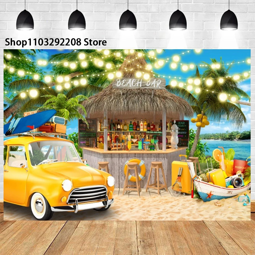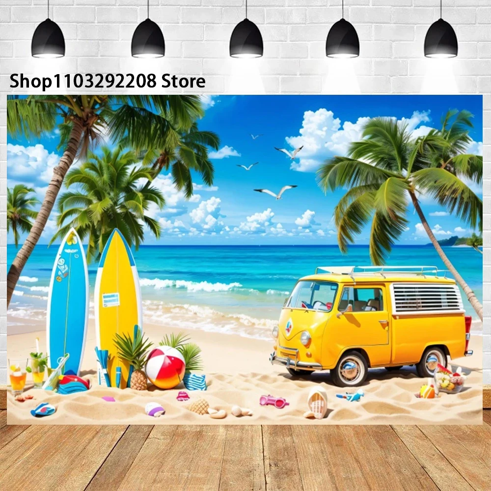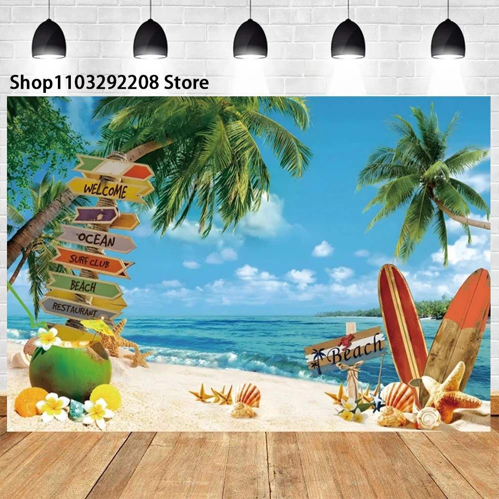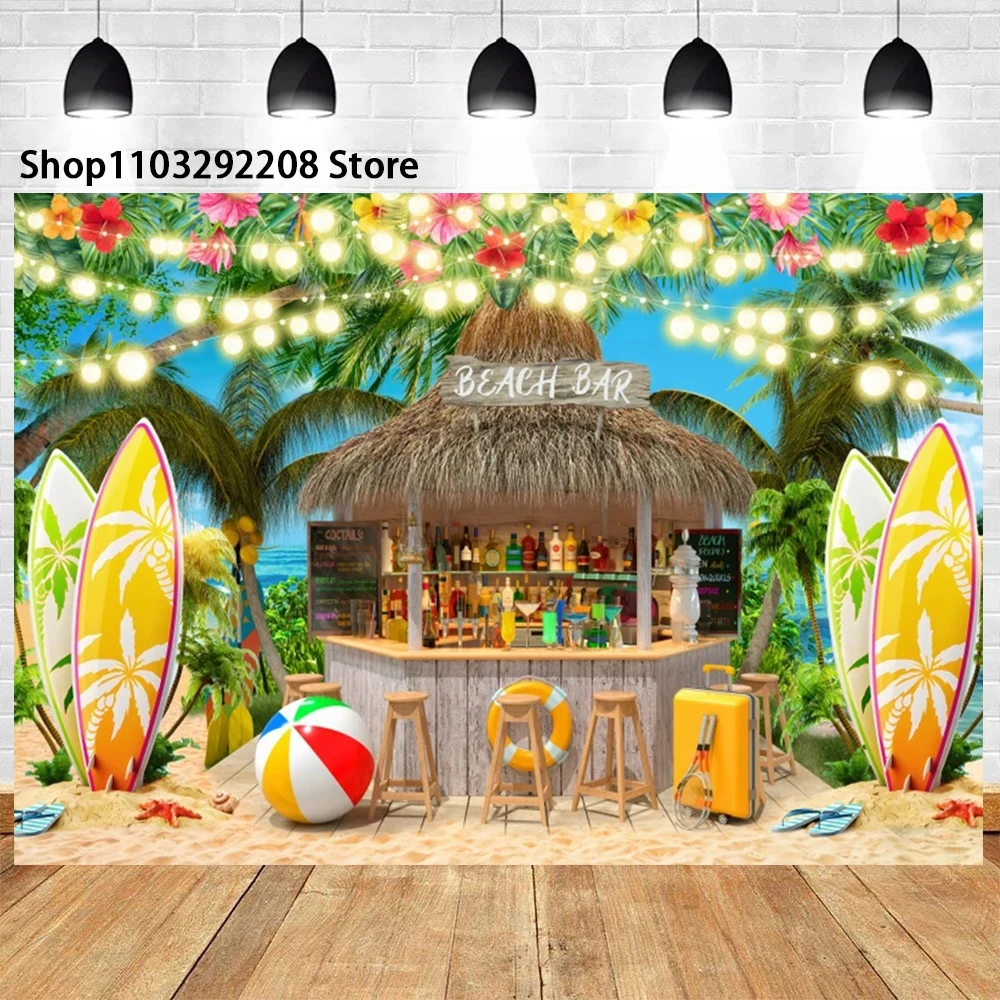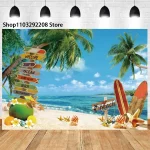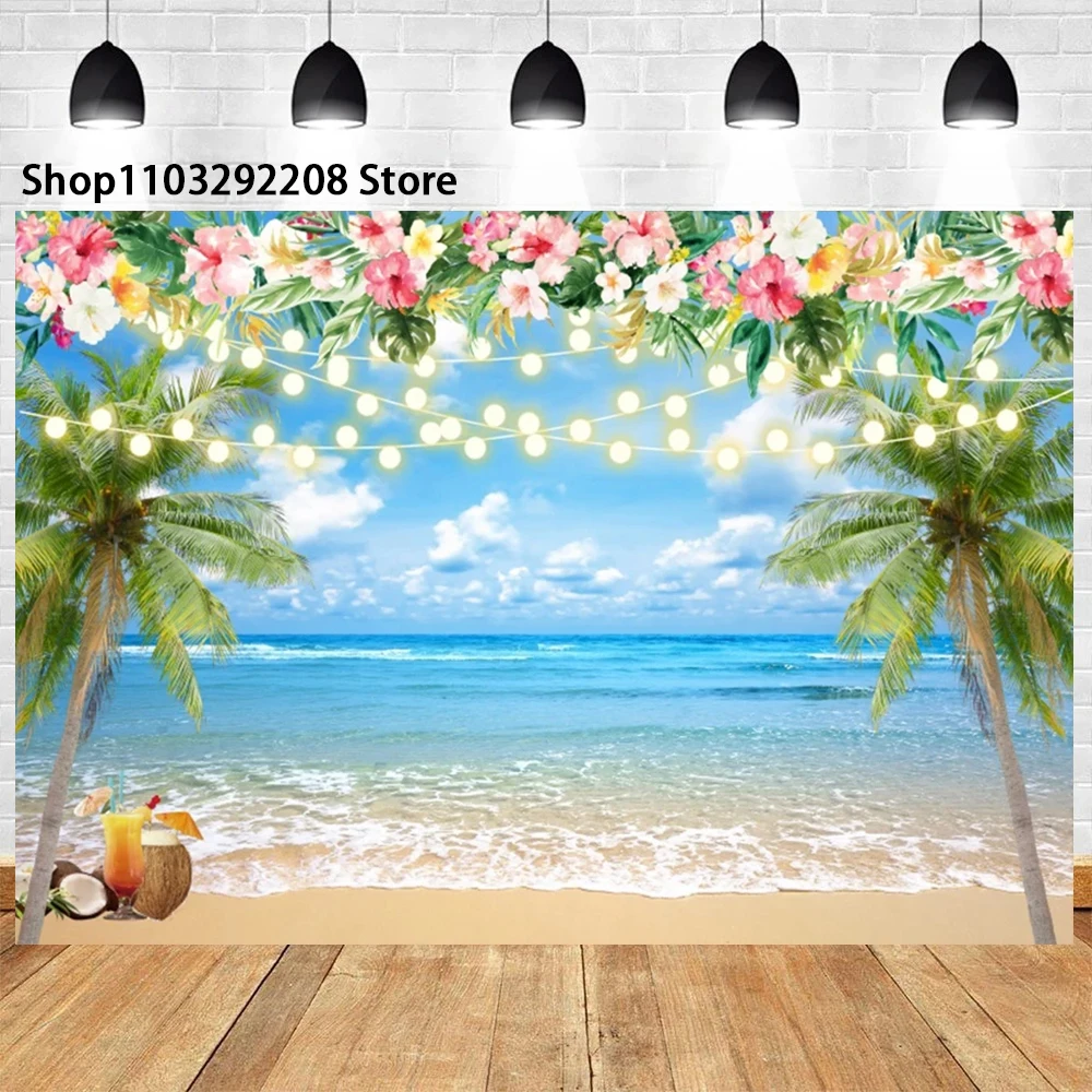 여름 하와이 해변 테마 열대 꽃 알로하 플라밍고 서핑 보드 해변 생일 아이 휴일 파티 사진 배경