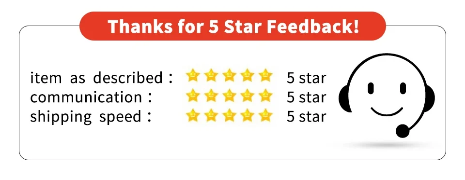 Your positive feedback is the best encouragement for us. Please leave me a 5 star positive feedback if you satisfied with this order when you receive the items. If you have any question, Please contact us. I will reply within 24 hours and try my best to reslove any problems.
