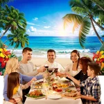여름 해변 하와이 배경 열대 꽃 서핑 보드 알로하 바다 생일 휴일 파티 장식 배너 사진 소품