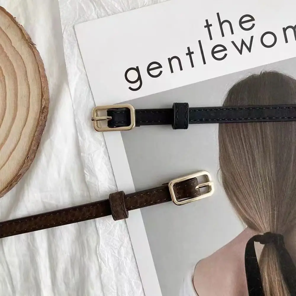 여성용 럭셔리 디자인 PU 가죽 벨트, 캐주얼 레트로 얇은 벨트, 다목적 청바지 허리 벨트