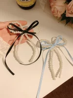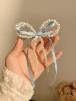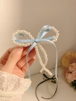 여성용 진주 활 리본 머리핀, 고급 감각, 한국 스타일 백 헤드 스푼, 덕빌 머리핀, 여름