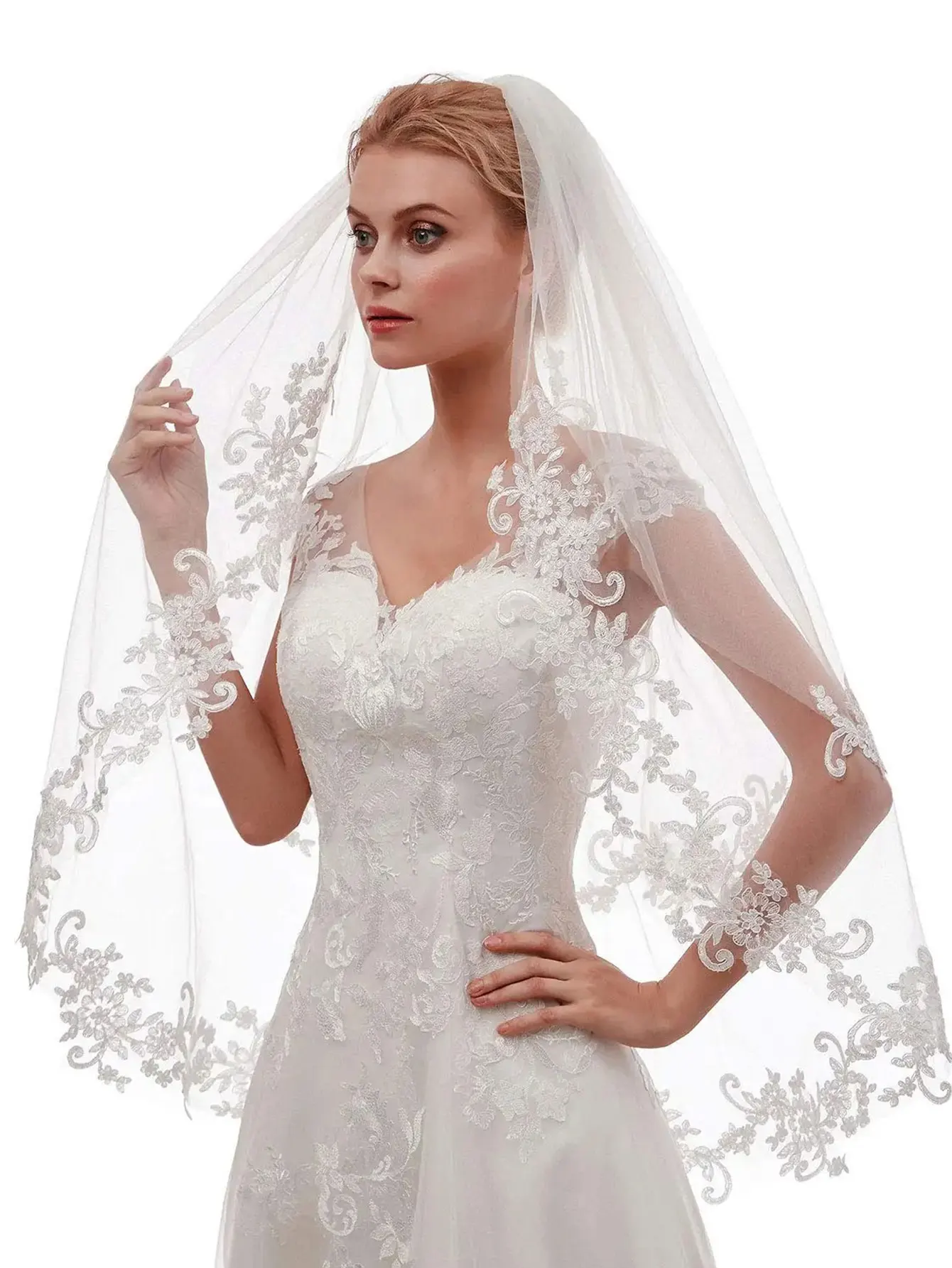 - 베일 가장자리 스타일: 레이스 엣지