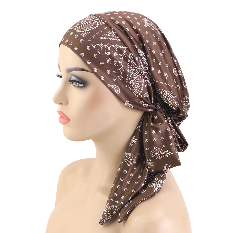 여성용 탄성 무슬림 여성 히잡 캐슈 꽃 히잡 머리띠 헤드스카프