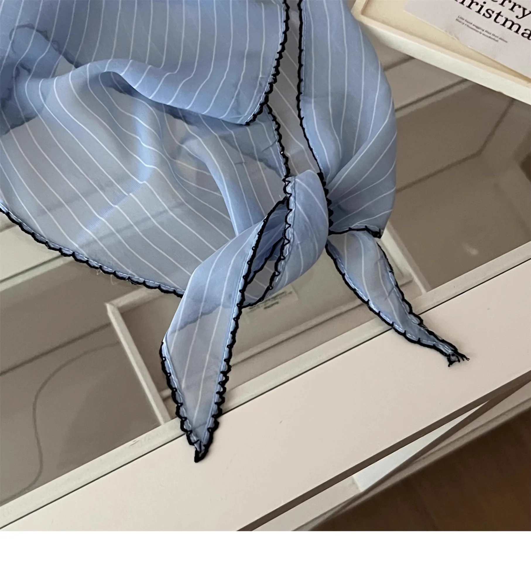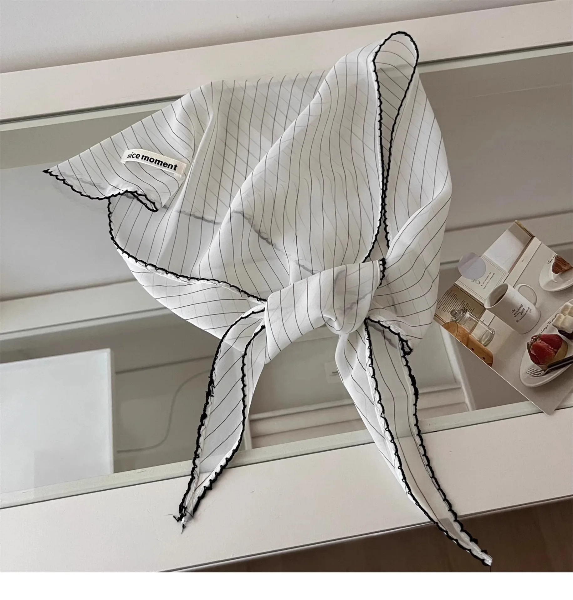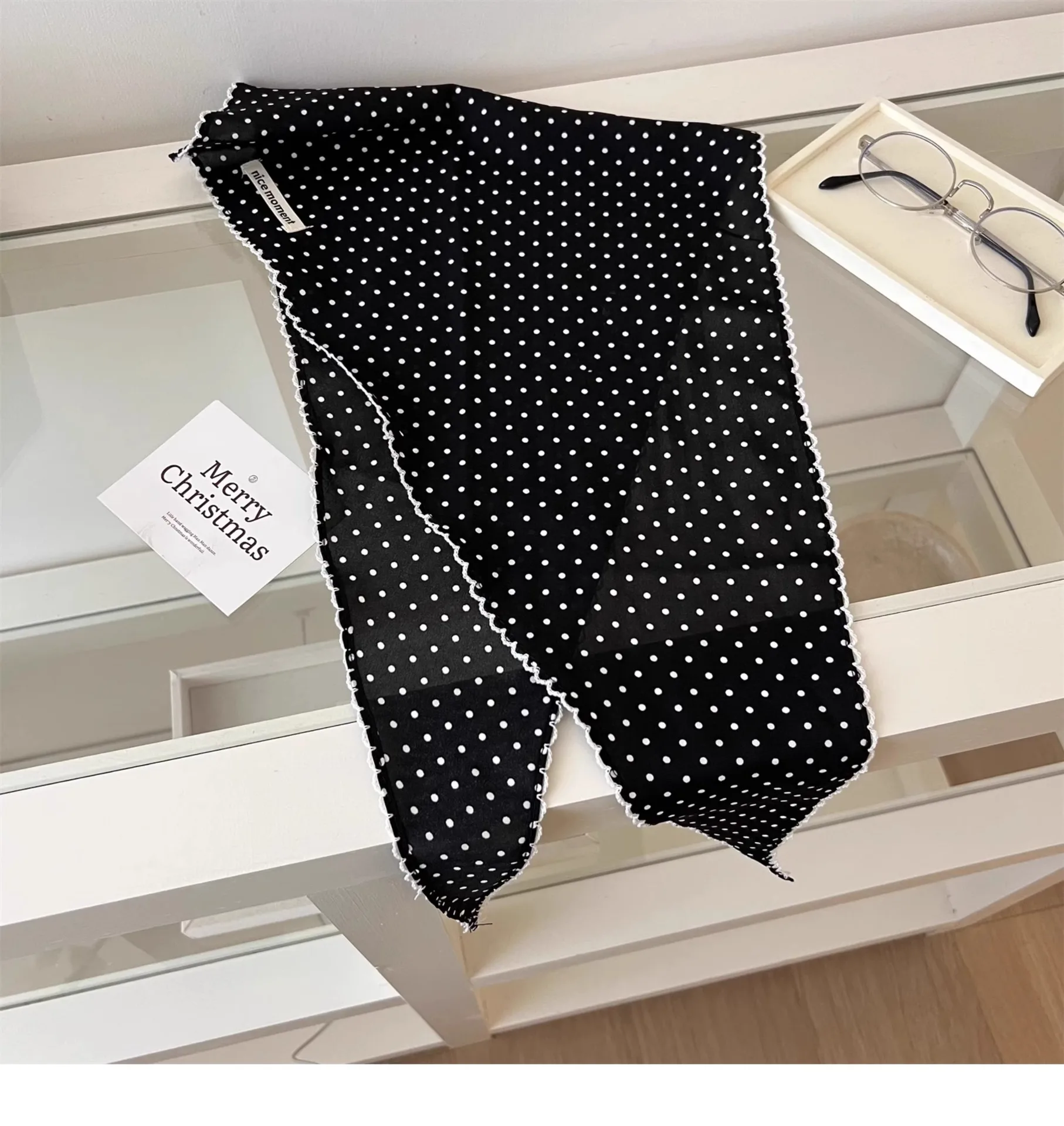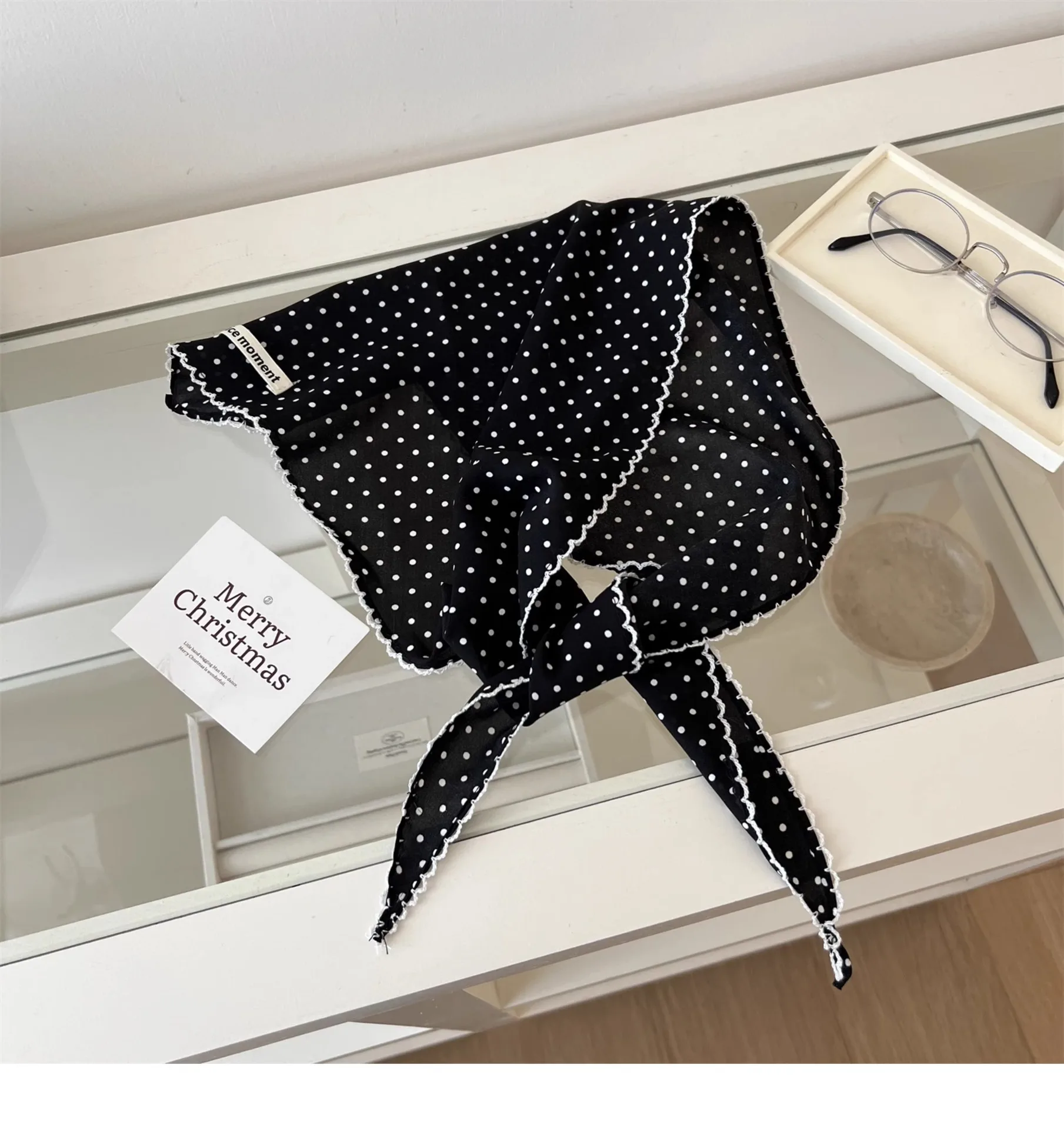 여성용 흰색 머리 스카프 한국어 폴카 도트 스카프 카와이 삼각형 스카프 프랑스어 작은 신선한 스카프 실크 스카프 헤어 스위트 스타일
