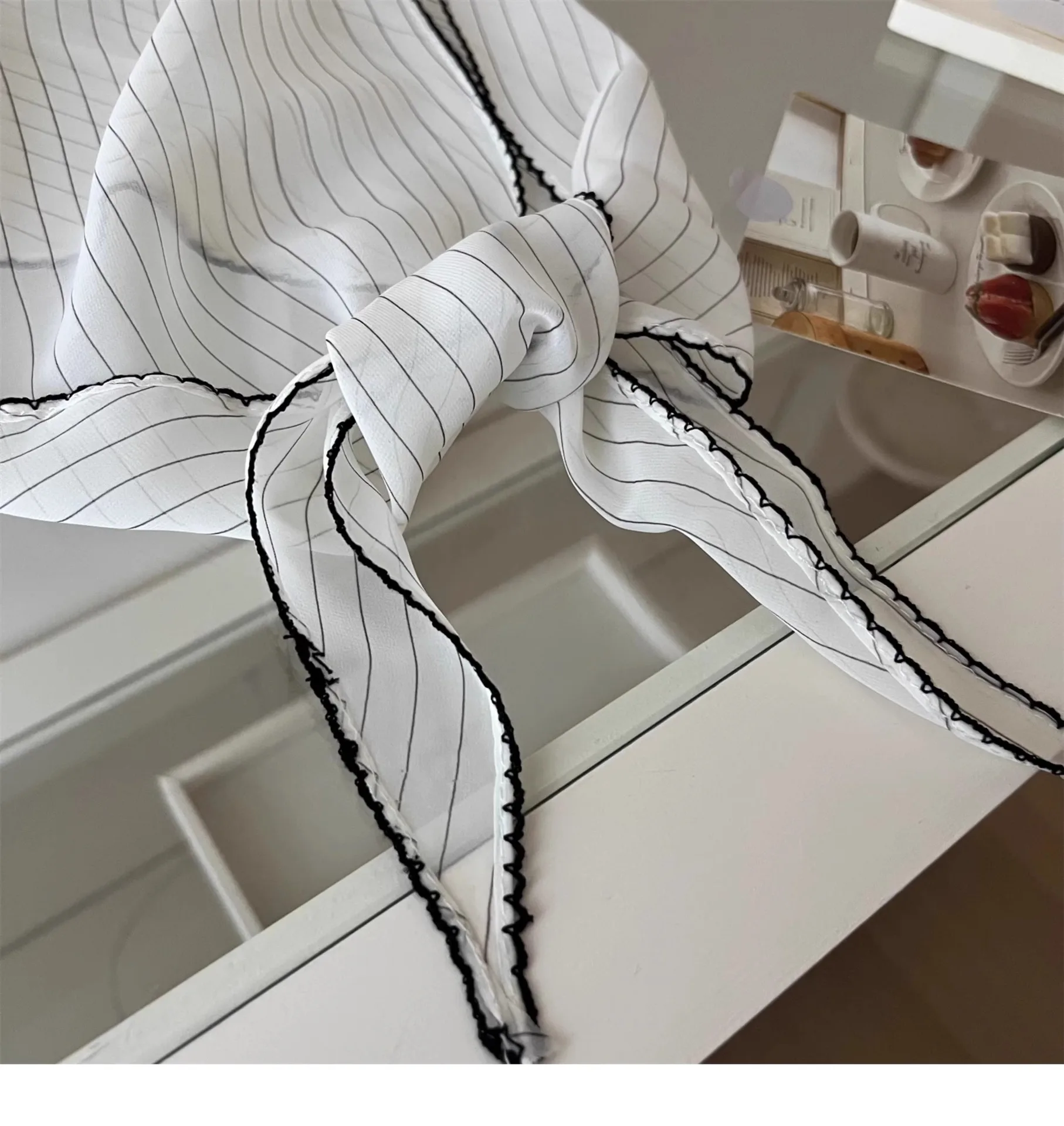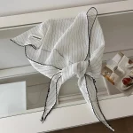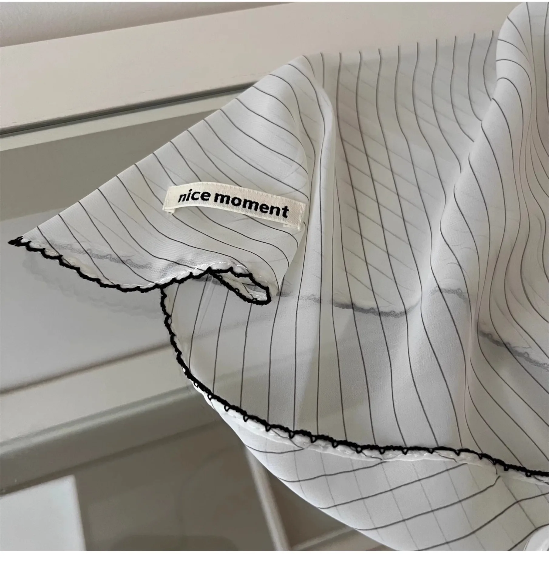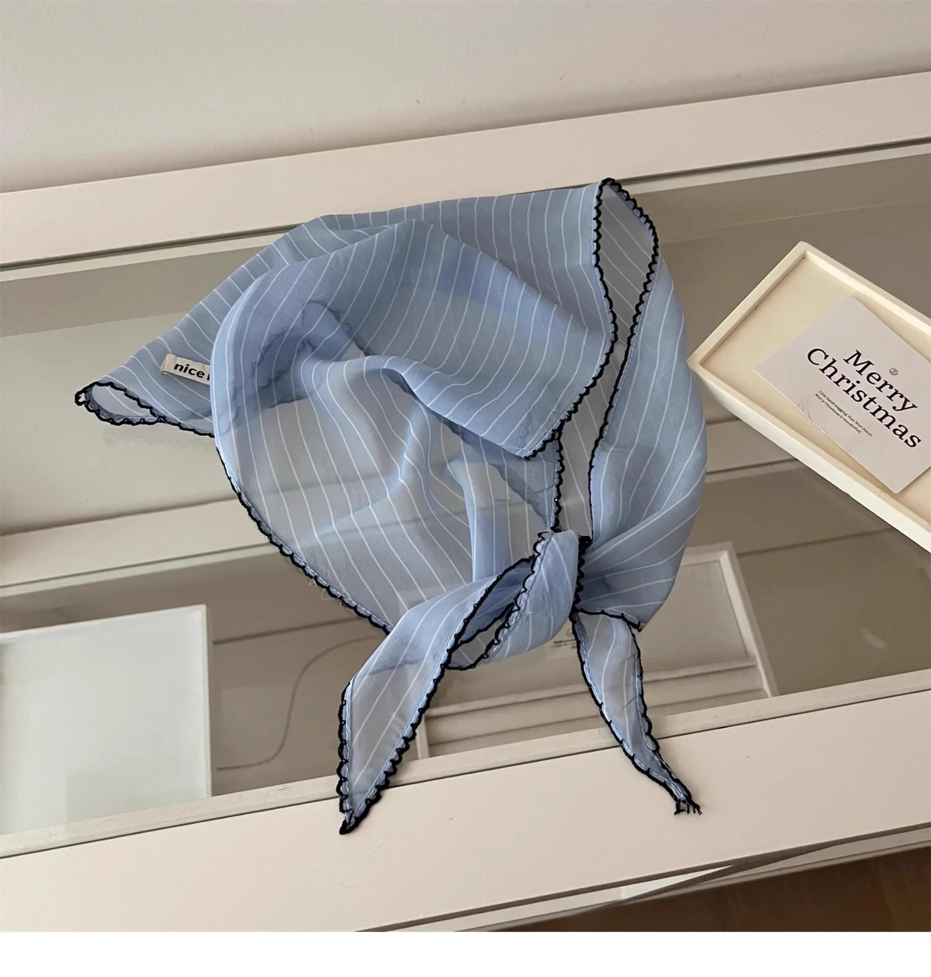 여성용 흰색 머리 스카프 한국어 폴카 도트 스카프 카와이 삼각형 스카프 프랑스어 작은 신선한 스카프 실크 스카프 헤어 스위트 스타일