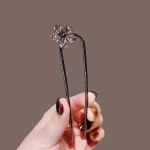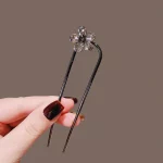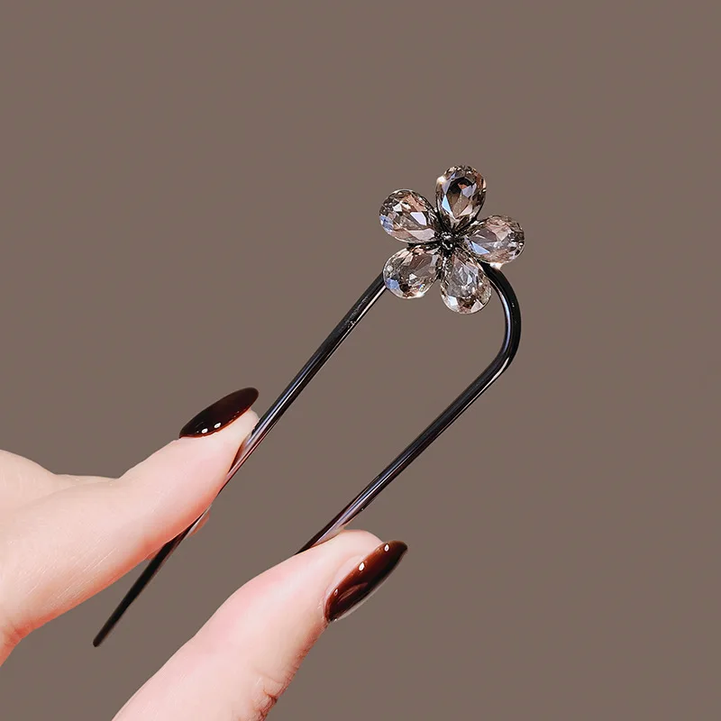 여성용 U자형 머리핀, 크리스탈 꽃, 뒷머리, 심플한 블랙 컬러, 여름 헤어 액세서리