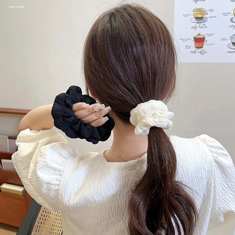 여성을위한 간단한 솔리드 컬러 대장 헤어 로프 우아한 높은 포니 테일 헤어 로프 패션 소녀 미트볼 헤드 Scrunchie