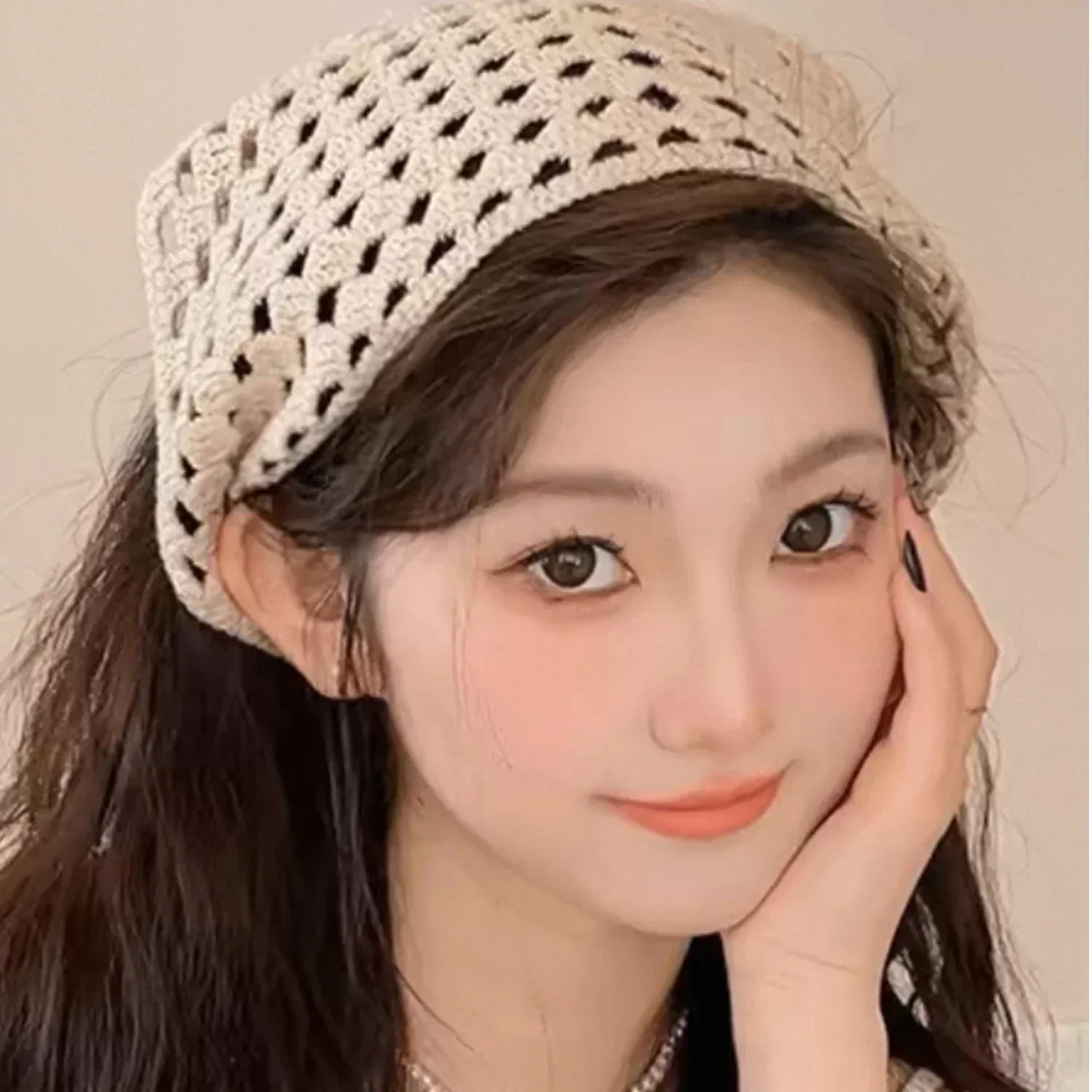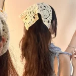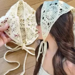 여성을위한 빈티지 니트 속이 빈 삼각형 머리 스카프 여름 여행 머리띠 헤어 스카프 사진 소품 소녀 헤어 액세서리