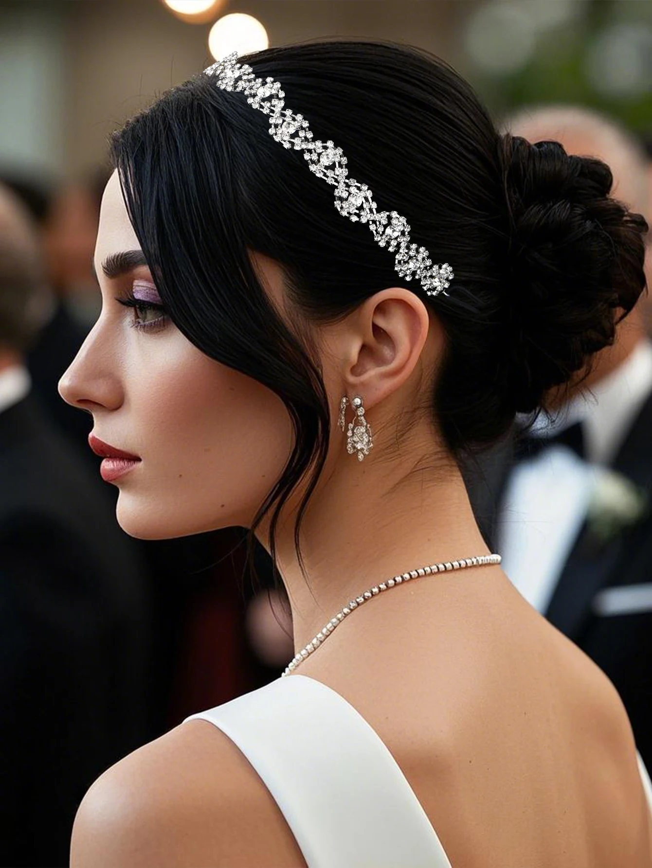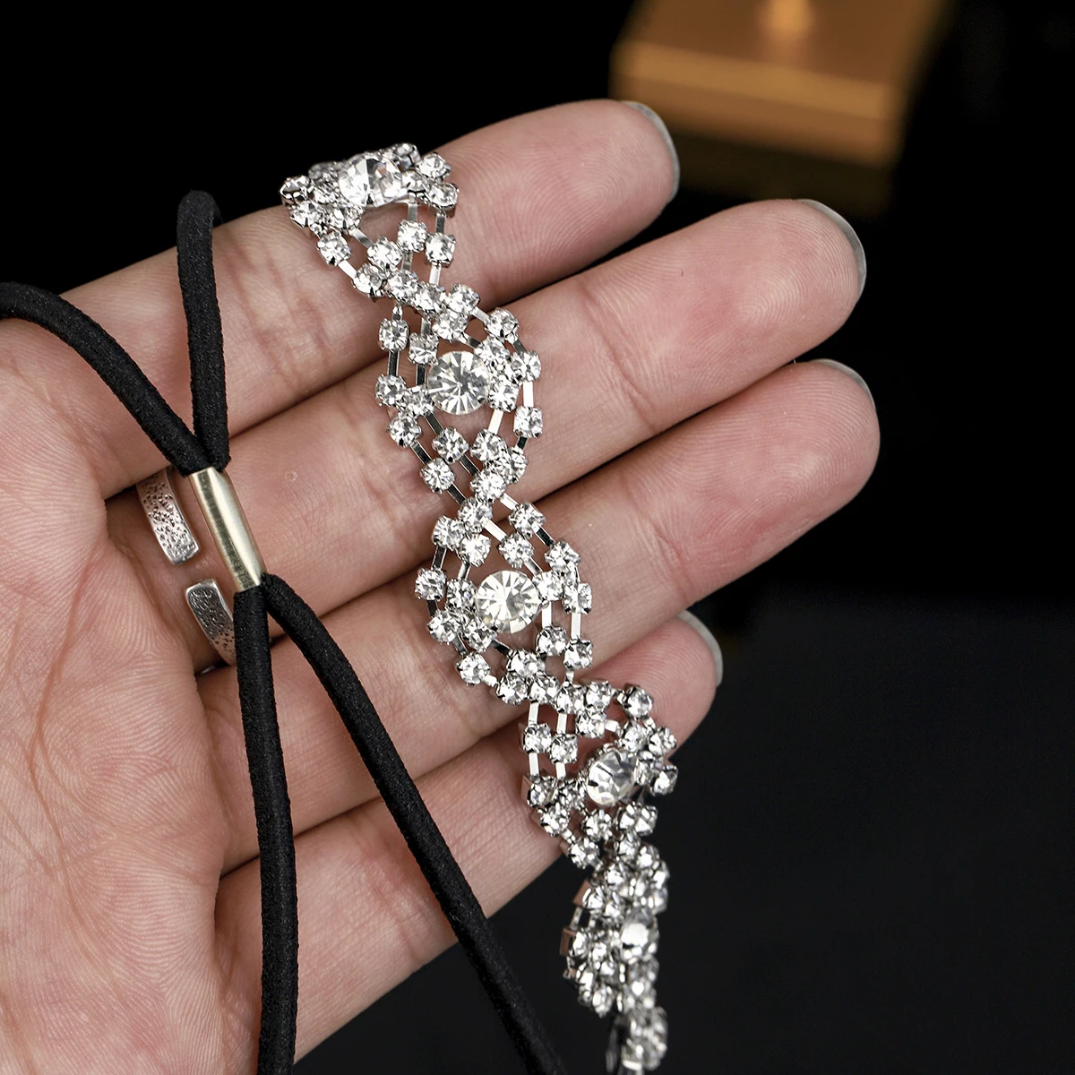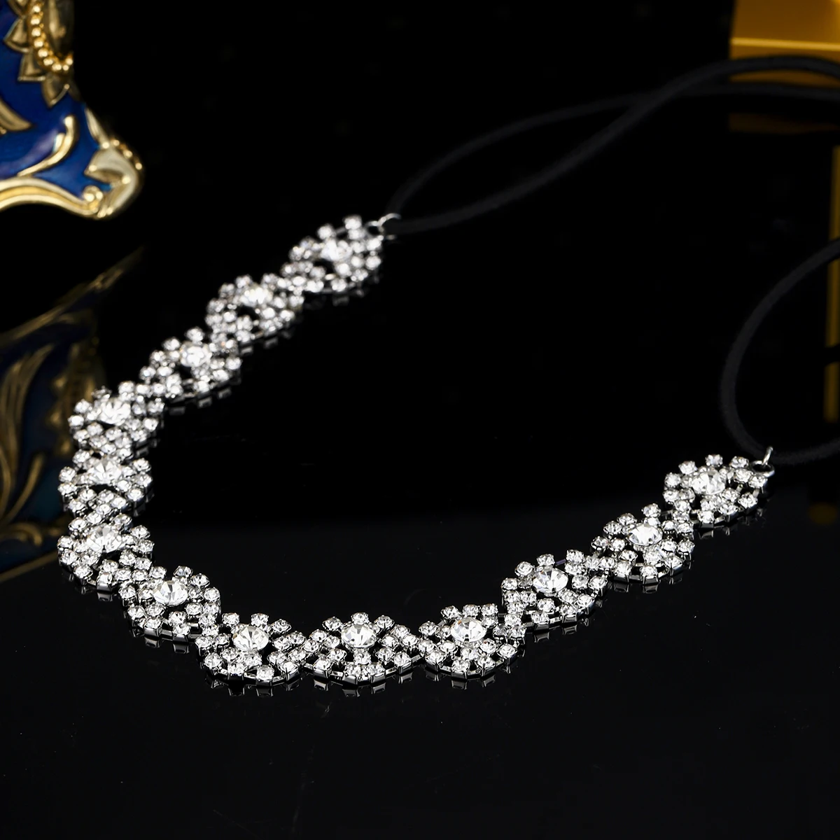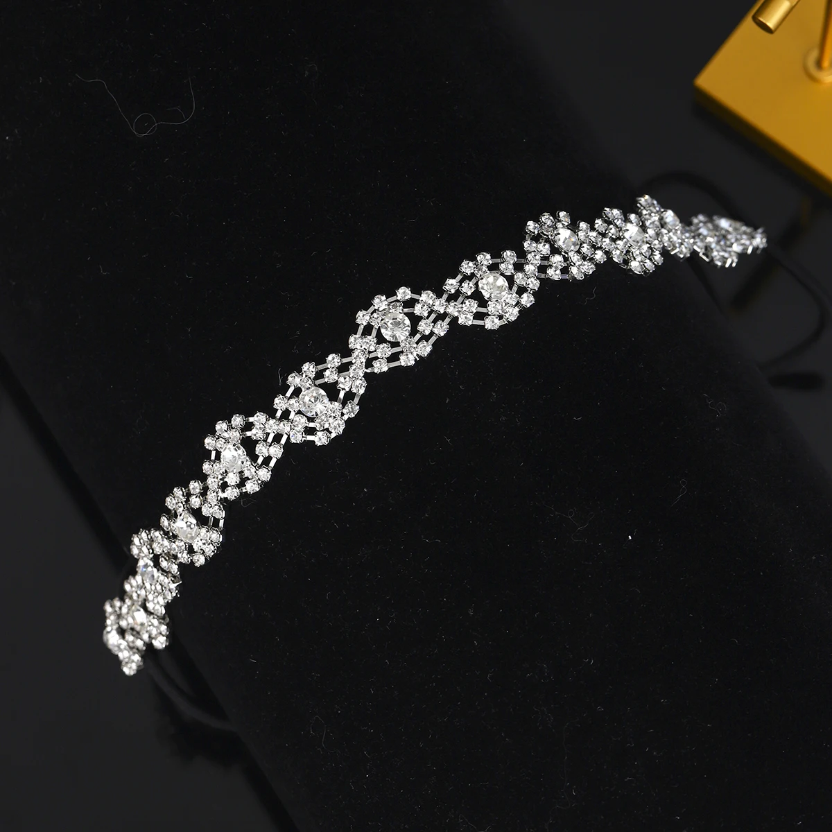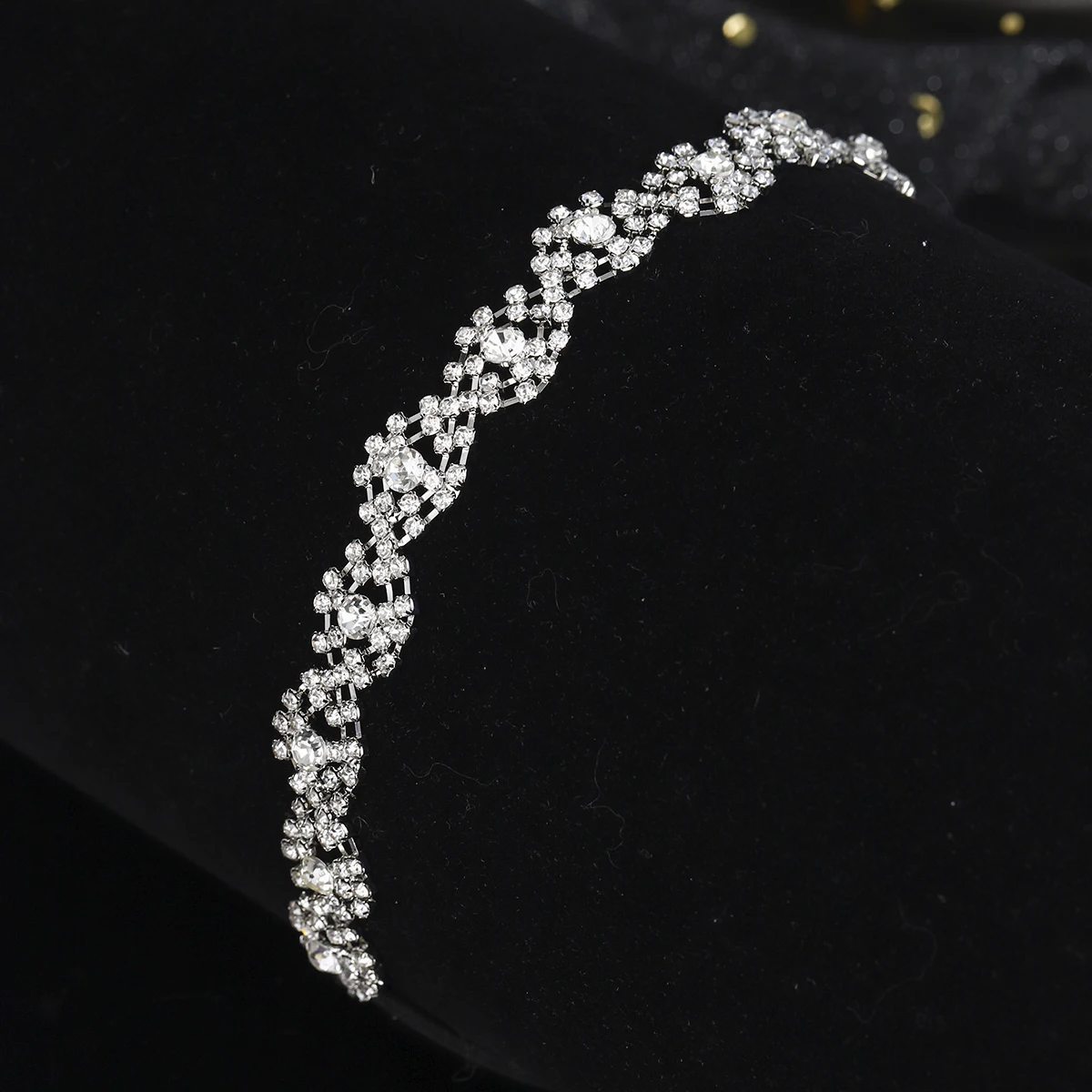 여성을위한 패션 주얼리 슬리버 라인 석 헤어 액세서리 신부 웨딩 크리스탈 스트레치 헤어 밴드 헤어 액세서리