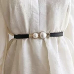 여성 벨트 크리 에이 티브 더블 진주 가죽 드레스 허리 탄성 얇은 우아한 여성 패션 액세서리 의류 장식 선물