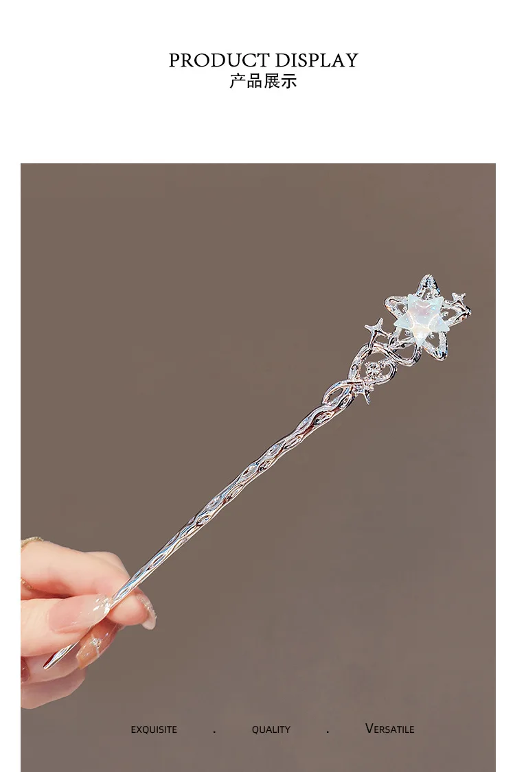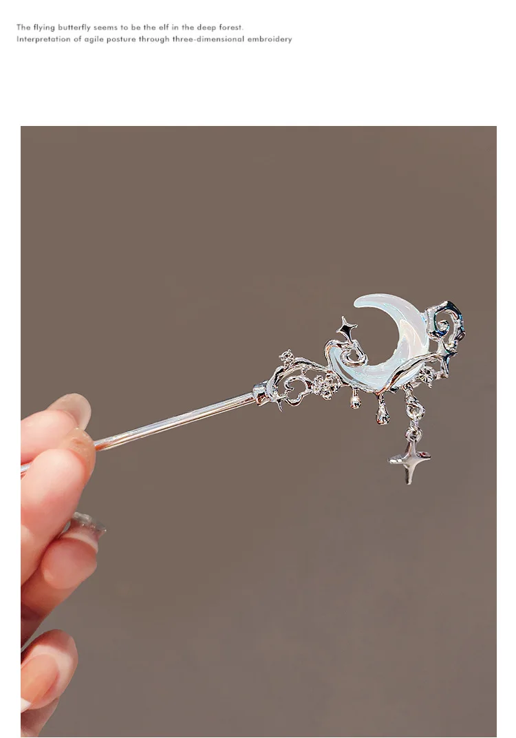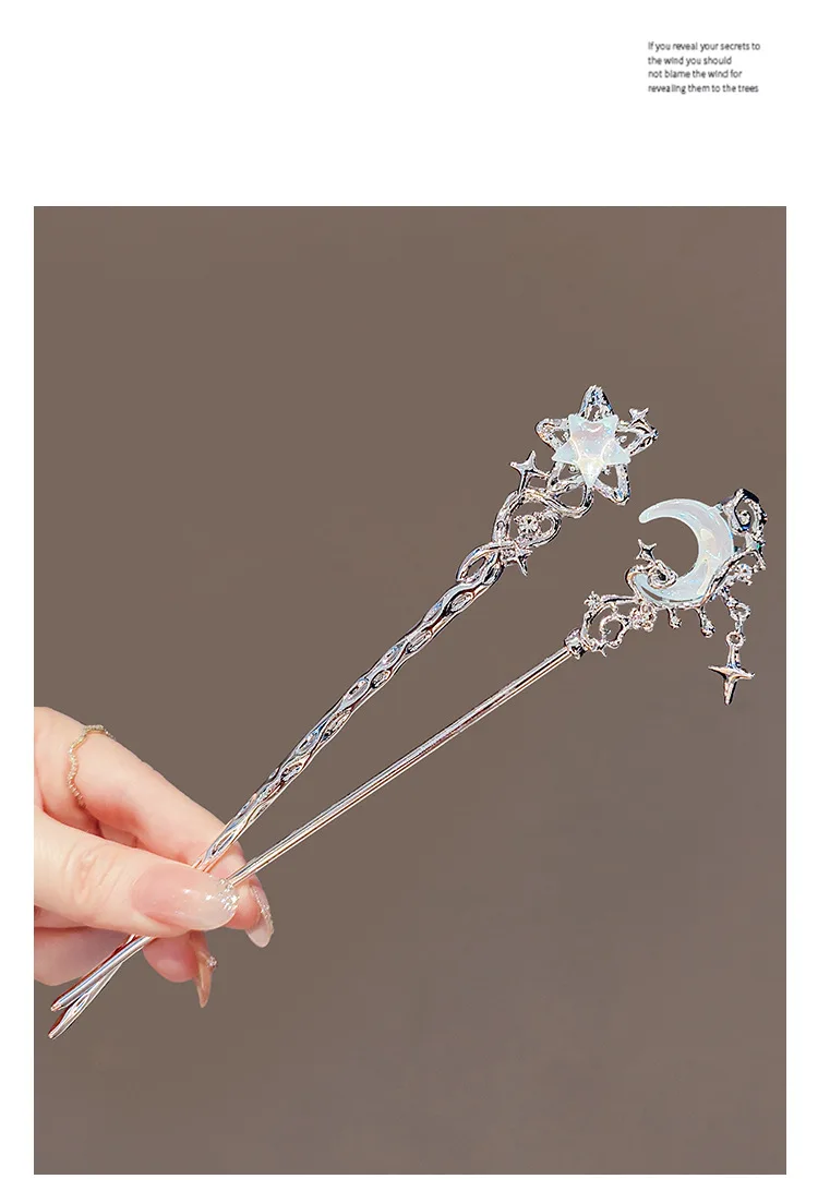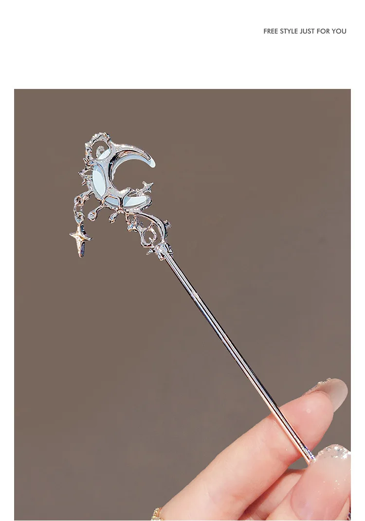 여자를위한 중국 스타일 헤어 액세서리 로맨틱 문스톤 스타 문 헤어 스틱 금속 지점 머리핀 헤어 포크 패션 선물