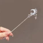 여자를위한 중국 스타일 헤어 액세서리 로맨틱 문스톤 스타 문 헤어 스틱 금속 지점 머리핀 헤어 포크 패션 선물
